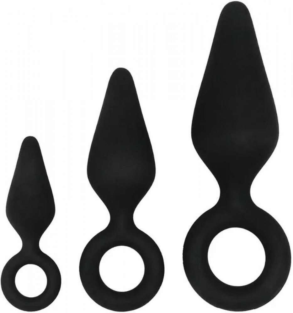 Easytoys - Anální dildo s kroužkem na uchopení - 3ks (černé) Vhodně ohebná a přitom dobře držící sada análních kuželek unisex se zúženým anatomickým designem, ideální velikost pro začátečníky. Pro dilataci nebo anální potěšení! Proč je to dobré? Unisex výrobek - mohou jej používat ženy i muži Pružný materiál šetrný k pokožce - ideální pro citlivé uživatele a uživatele náchylné k alergiím Anatomick...