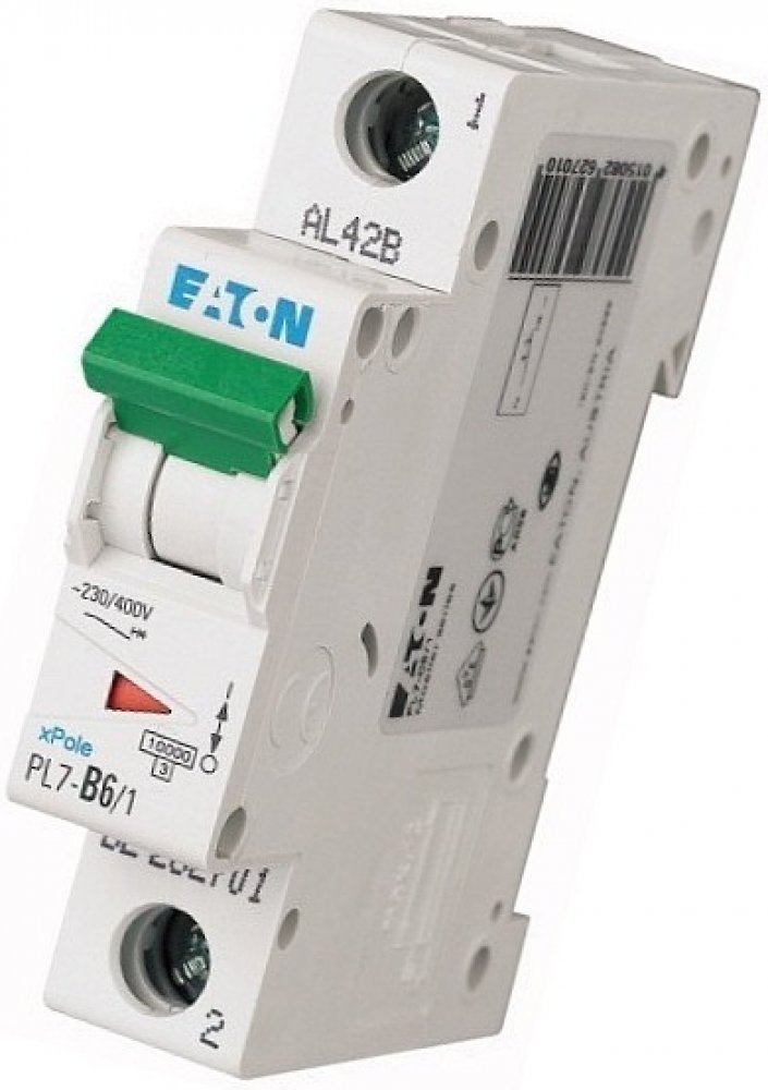 Jednofázový jistič Eaton 262673 PL7-B6/1 na DIN lištu je jednopólový jistič s charakteristikou zátěže B a maximálním proudem 6 A. Jistič slouží k ochraně elektrických obvodů proti přetížení a zkratu.