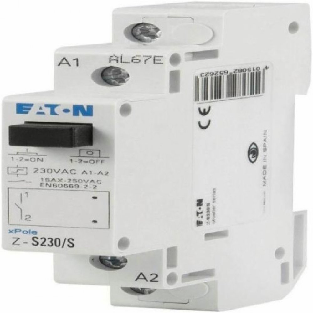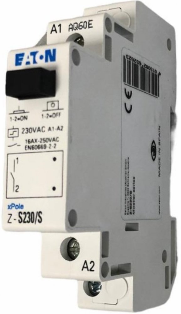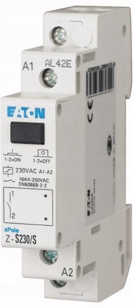 Instalační pulsní relé Z-S230/S (265262) od výrobce Eaton je jednopólové zařízení s ovládacím napětím 230 V AC, jmenovitým proudem 16 A a jedním spínacím kontaktem (1NO - normaly open). Je určen pro spínání elektrických obvodů v domovních, komerčních a průmyslových aplikacích. Díky své kompaktní konstrukci je vhodný pro instalaci do rozvaděčů na DIN lištu.