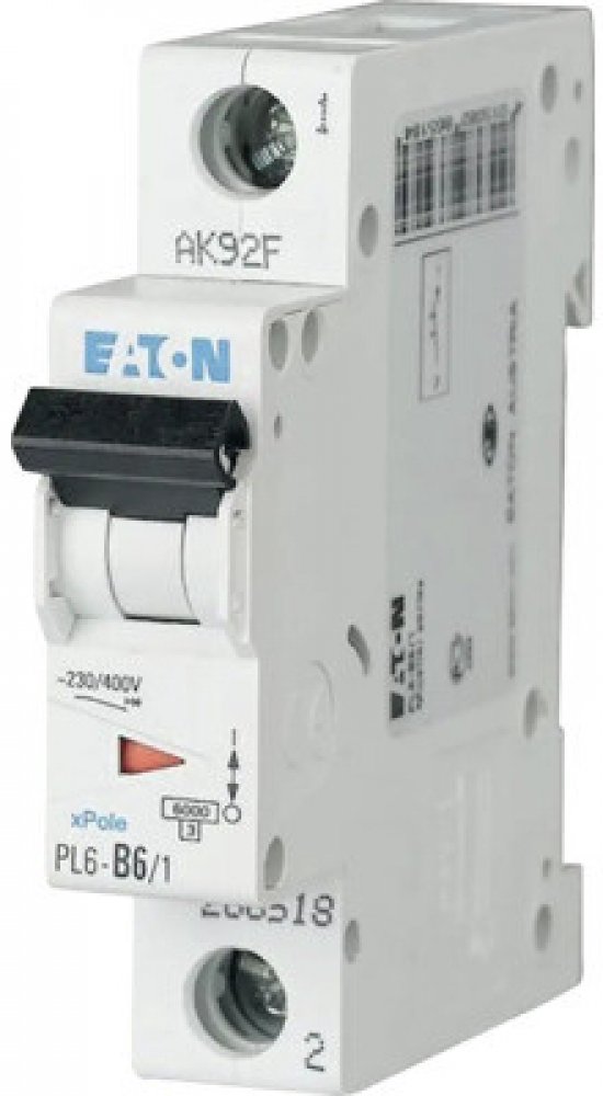 Jednopólový jistič EATON z ekonomické řady PL6 vhodné zejména pro domovní instalace je určen pro jištění světelných a zásuvkových obvodů s nízkými proudovými rázy. Jedná se o elektrický přístroj, který při nadměrném elektrickém proudu (tzv. nadproudu), zejména při přetížení nebo zkratu, automaticky rozpojí elektrický obvod. Takové rozpojení elektrického obvodu může obsluhu ochránit před možným úrazem elektrickým proudem a zároveň chrání elektrické zařízení před jeho poškozením. Oproti pojistce, která musí být vyměněna, lze jistič znovu zapnout, a tím obnovit dodávku proudu do elektrického obvodu. Jedná se tedy o nedestruktivní jistící zařízení, které díky svým technickým parametrům a signalizaci zapnuto/vypnuto zaručuje bezpečnou a snadnou obsluhu.