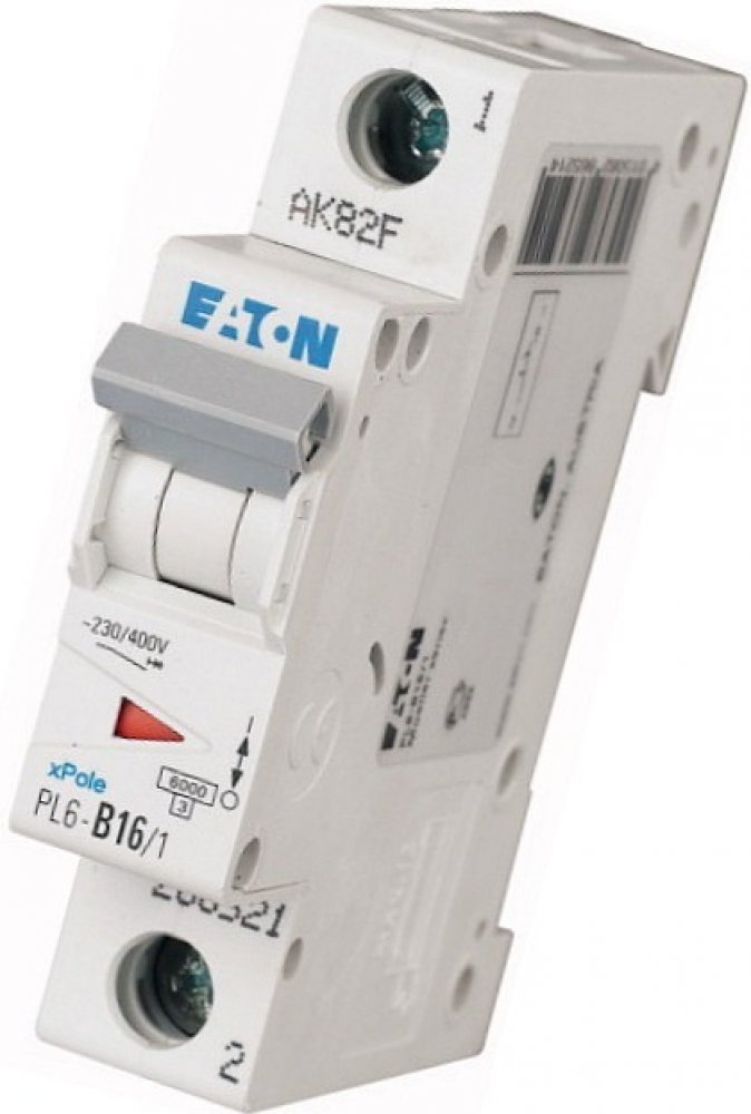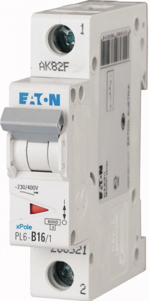 Jednofázový jistič Eaton 286521 PL6-B16/1 na DIN lištu je jednopólový jistič s charakteristikou zátěže B a maximálním proudem 16 A. Jistič slouží k ochraně elektrických obvodů proti přetížení a zkratu.