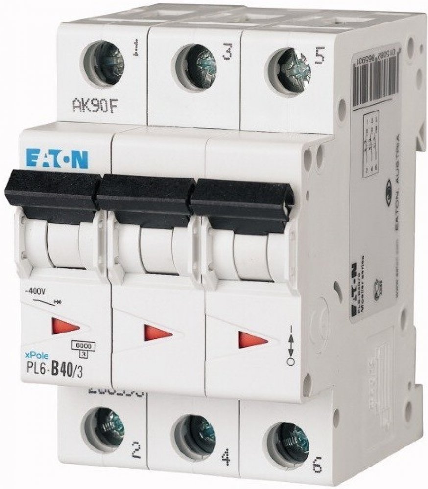 Třífázový jistič Eaton 286591 PL6-B25/3 na DIN lištu je třípólový jistič s charakteristikou zátěže B a maximálním proudem 25 A. Jistič slouží k ochraně elektrických obvodů proti přetížení a zkratu.