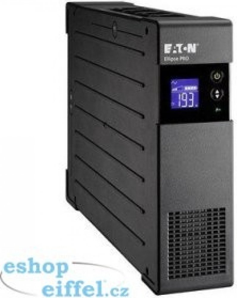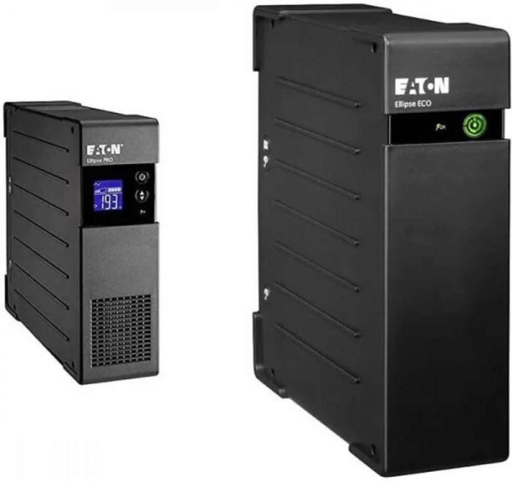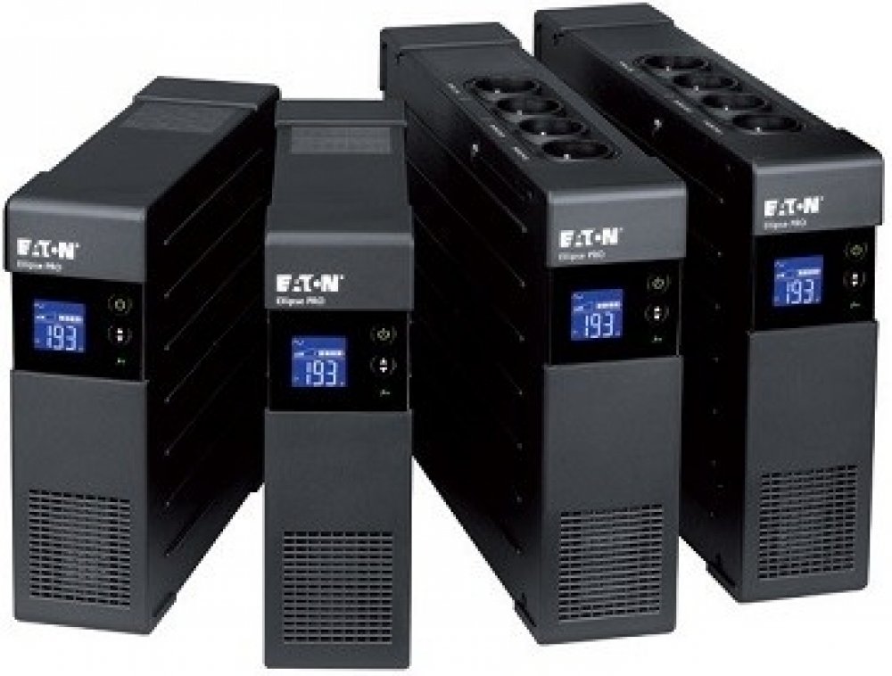 Eaton Ellipse PRO je UPS kombinovaná s ochranou proti přepětí, která nabízí ochranu čtyř zařízení v IEC-320-C13 zásuvkách, ale i Ethernetové datové sítě nebo telefonní linky. LCD displej poskytuje jasné informace o stavu a měřených hodnotách. Umožňuje také snadné nastavení. Vybavena je USB portem a software pro správu napájení. Extra plochý design umožňuje snadnou instalaci do každého kancelářského prostředí. UPS lze nainstalovat ve vertikální poloze pod stolem nebo vodorovně pod monitor. Výkonná baterie poskytne až 9 minut k zálohování při 50% zatížení. Funkce EcoControl, která automaticky vypne připojená zařízení v případě, že hlavní zařízení je vypnuté, může snížit spotřebu energie až o 15 %.