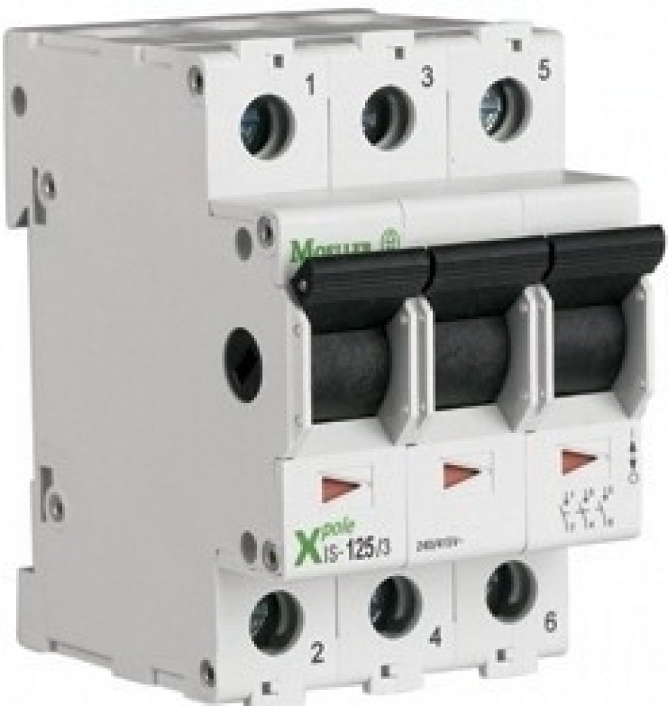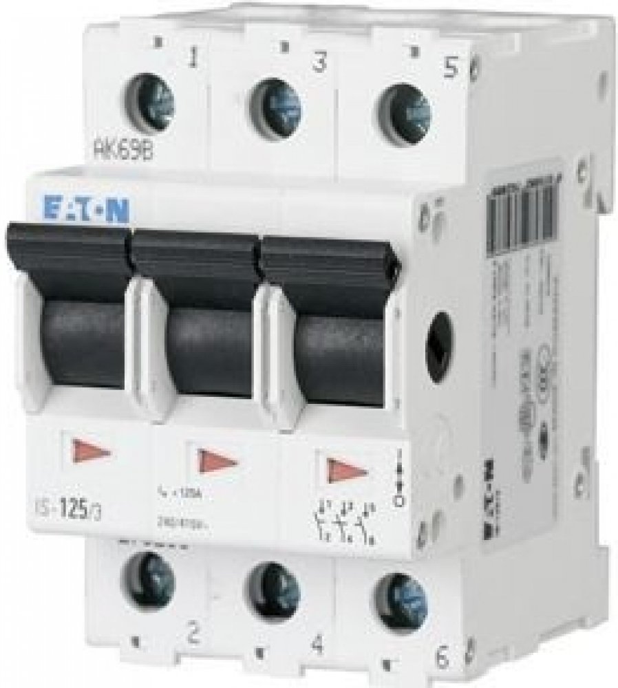 3pólový hlavní vypínač EATON IS-40/3 se uplatní v průmyslu a účelových stavbách. Instalovat jej můžete v libovolné poloze a libovolná je i strana síťového připojení. Vypínač spadá do kategorie užití AC-22. EATON IS-40/3 můžete připojit pomocí vodičů s průřezem 2,5–50 mm².