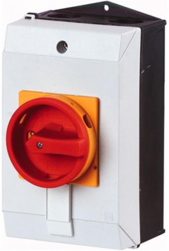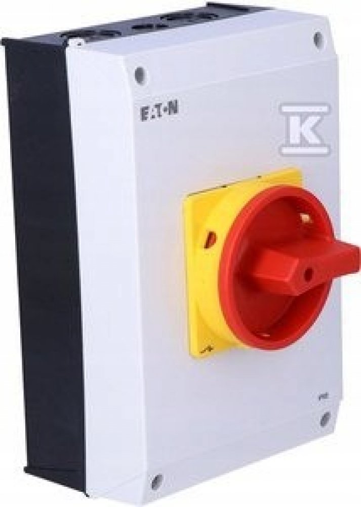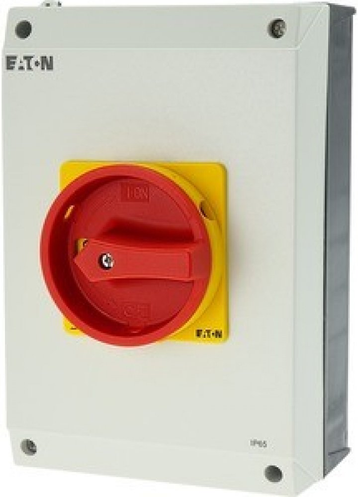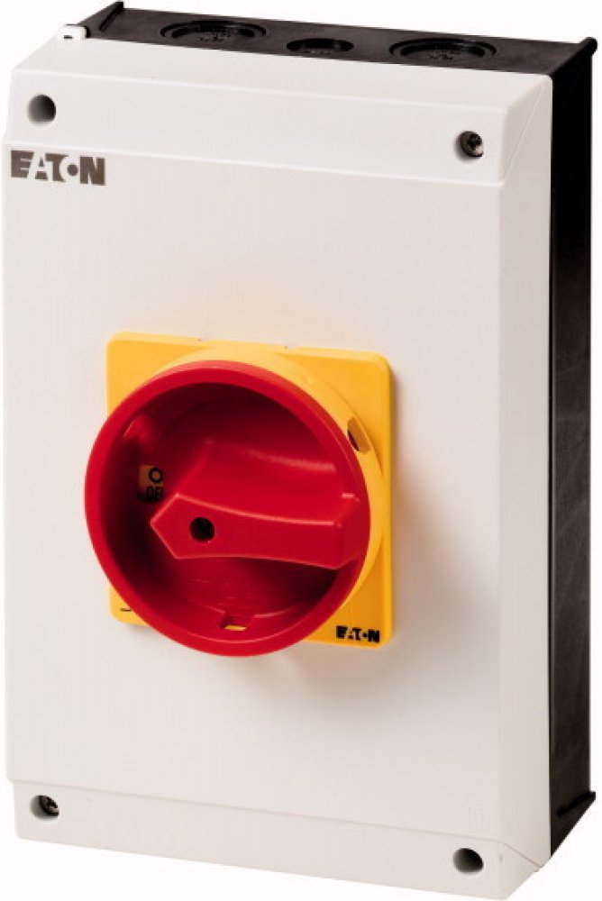 Hlavní odpojovač / izolační odpojovač zapnuto /vypnuto podle IEC/EN 60947-3, 690V/63A, třída ochrany vpředu IP65, rukojeť červená s blokovacím věncem žlutá, uzavíratelná 3 visacími zámky, izolační odpínače P3 mají malé rozměry a pevnou konstrukci. Ruční pohon funguje přímo na kontakty. Kontakty se po vypnutí nuceně rozevřou. . Obecné konstrukce: nástěnná krytina s izolací, montáž, nepřímá montáž, montáž rozdělovače IVS