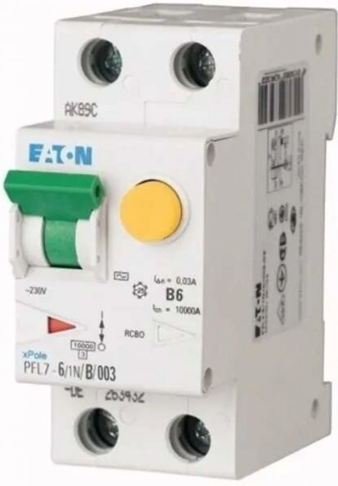PFL7-6/1N/B/003-A Chránič 1N,B,0.03A,6A najdete v kategoriích Spínací a jistící přístroje, Proudové chrániče, Proudový chránič s jističem, Rozvodnice, výkonové spínací a jistící prvky, výrobce Eaton, EAN 4015082634315, kód dodavatele 263431. Proudový chránič s jističem Eaton PFL7-6/1N/B/003-A 6A 30mA 263431 nabízíme od 1 ks. Kód EMAS PFL7-6/1N/B/003-A Chránič 1N,B,0.03A,6A je ELPRCH0014678.