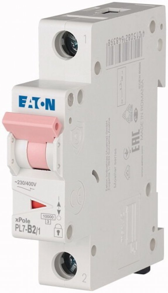 Jednofázový jistič PL7-B2/1 (264839) od výrobce Eaton poskytuje spolehlivou ochranu elektrických obvodů před přetížením a zkratem. Je vybaven charakteristikou B, která zajišťuje vypnutí při 3–5násobku jmenovitého proudu, což ho činí vhodným pro různé typy aplikací v domovních i komerčních instalacích. Tento jistič s jmenovitým proudem 2 A, napětím 230 V AC a zkratovou odolností 10 kA je určen pro montáž na DIN lištu (šířka modulu 18 mm). Inovované provedení jističů PL7 se zámečkem plně vyhovuje připojovacím podmínkám distribučních společností ČEZ, E.ON a PRE, a je tak ideální volbou pro použití jako hlavní jistič před elektroměrem. Díky tomu je vhodný jak pro bytové, tak i průmyslové aplikace. Splňuje požadavky normy IEC/EN 60898-1 a je navržen pro provoz v teplotním rozmezí od -25 °C do +55 °C.