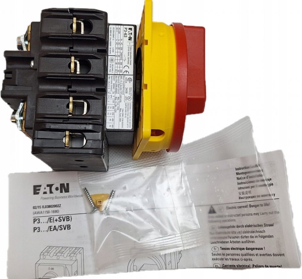 Vačkový spínač Eaton P3-63/EA/SVB/N (katalogové číslo 010398) je hlavní odpojovač a nouzový odpojovač s vysokým jmenovitým proudem, určený pro čelní montáž (na fasádu) do rozvaděčů.