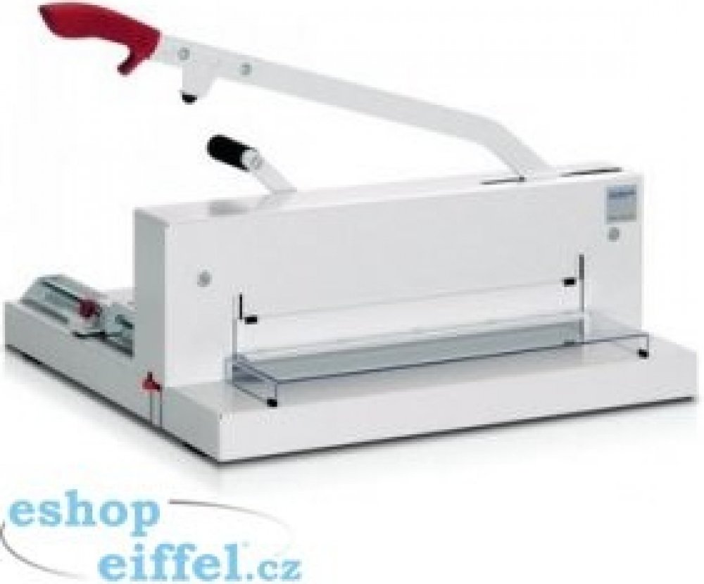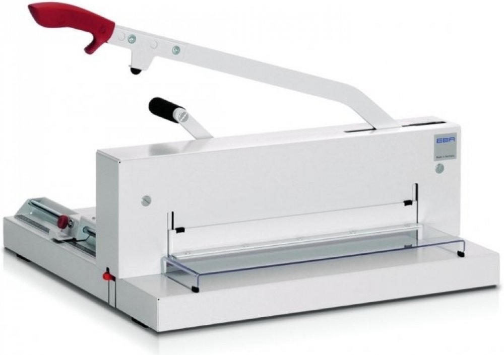Pohodlné a přesné řezání od značkového výrobce EBA, až do formátu A3, délka řezu 430 mm, výška stohu 20 mm, hloubka vložení stohu 340 mm.