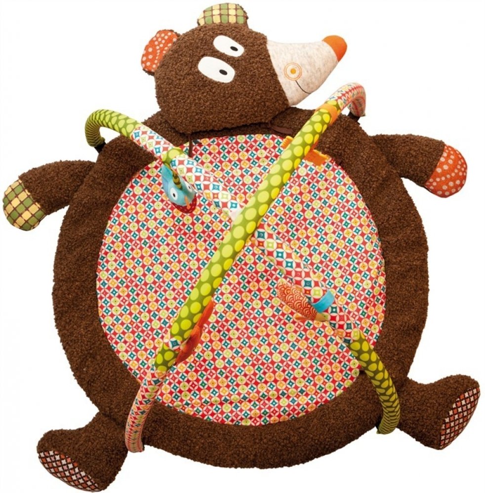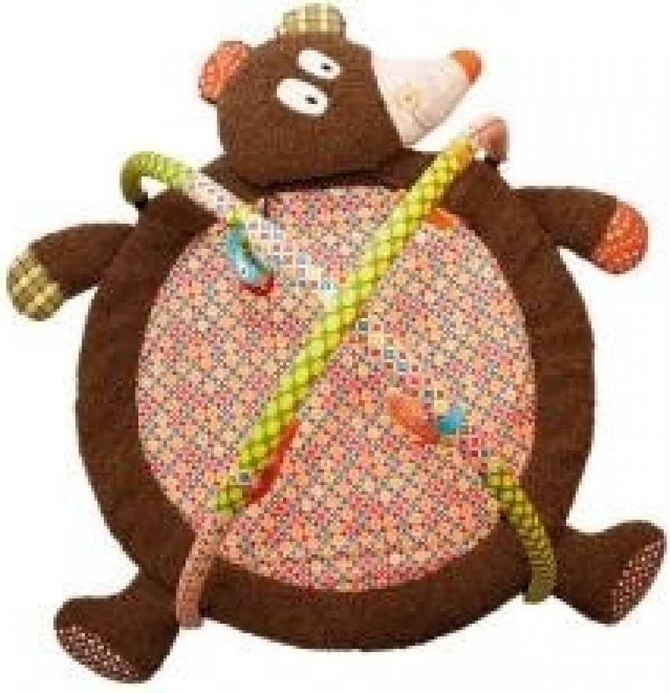 Interaktivní hrací deka Ebulobo s motivem medvídka je určena pro nejmenší děti, kteří začínají objevovat svět. Hrací deka obsahuje odepínatelnou hrazdičku se čtyřmi odnímatelnými hračkami, které se dají rovněž připnout na okraje deky nebo se s nimi dá hrát samostatně - kousátko ve tvaru sušenky, rybičku (píská), ptáčka (cinká), veverku (chrastí). Hlavu medvídka je možné odepnout a použít samostatně jako polštářek nebo hračku Rozměr: 85 cm Vhodné pro děti od narození Materiál: bavlna, polyester Pratelné na 30 stupňů Unikátní francouzské hračky Ebulobo navrhla známá designérská dvojice Anna Lelong a Ferdinand Lecomte. Jejich hračky EBULOBO jsou ve všech směrech inovativní a originální. Interaktivní hračky rozvíjí motorické schopnosti a komunikační dovednosti.