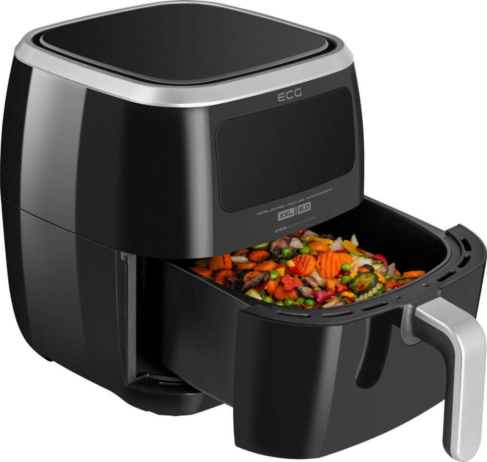Smažená křidélka, křupavé hranolky a lahodné koblížky můžete mít kdykoli, aniž byste museli jít do fast foodových řetězců nebo obchodů. Všechny tyto dobroty, a navíc s minimálním množstvím tuku, vám pomůže připravit horkovzdušná fritéza ECG. A tak si je můžete vychutnat častěji a úplně bez výčitek. Nádoba fritézy má objem 7 l. Pro výrobu nádoby byl zvolen hliník, který zaručuje vysokou kvalitu a dlouhou životnost. Na nepřilnavém povrchu se potraviny nepřichytí, čištění fritézy tak bude velmi jednoduché. Podle typu připravovaného jídla lze nastavit teplotu v rozmezí od 30 do 200 °C. Příkon 1800 W zařídí rychlé zahřátí vzduchu a ideální výkon po celou dobu provozu. Teplotu a čas přípravy si nastavíte ručně nebo využijete jeden z 8 přednastavených programů. Fritovací hrnec ECG vám nabídne nejen základní výbavu, ale i další praktické vlastnosti a funkce pro ještě pohodovější vaření. V balení se nachází rovněž vyjímatelná nádoba. Zásadní přednosti horkovzdušné fritézy ECG AF 6000 Horkovzdušná fritéza ECG...