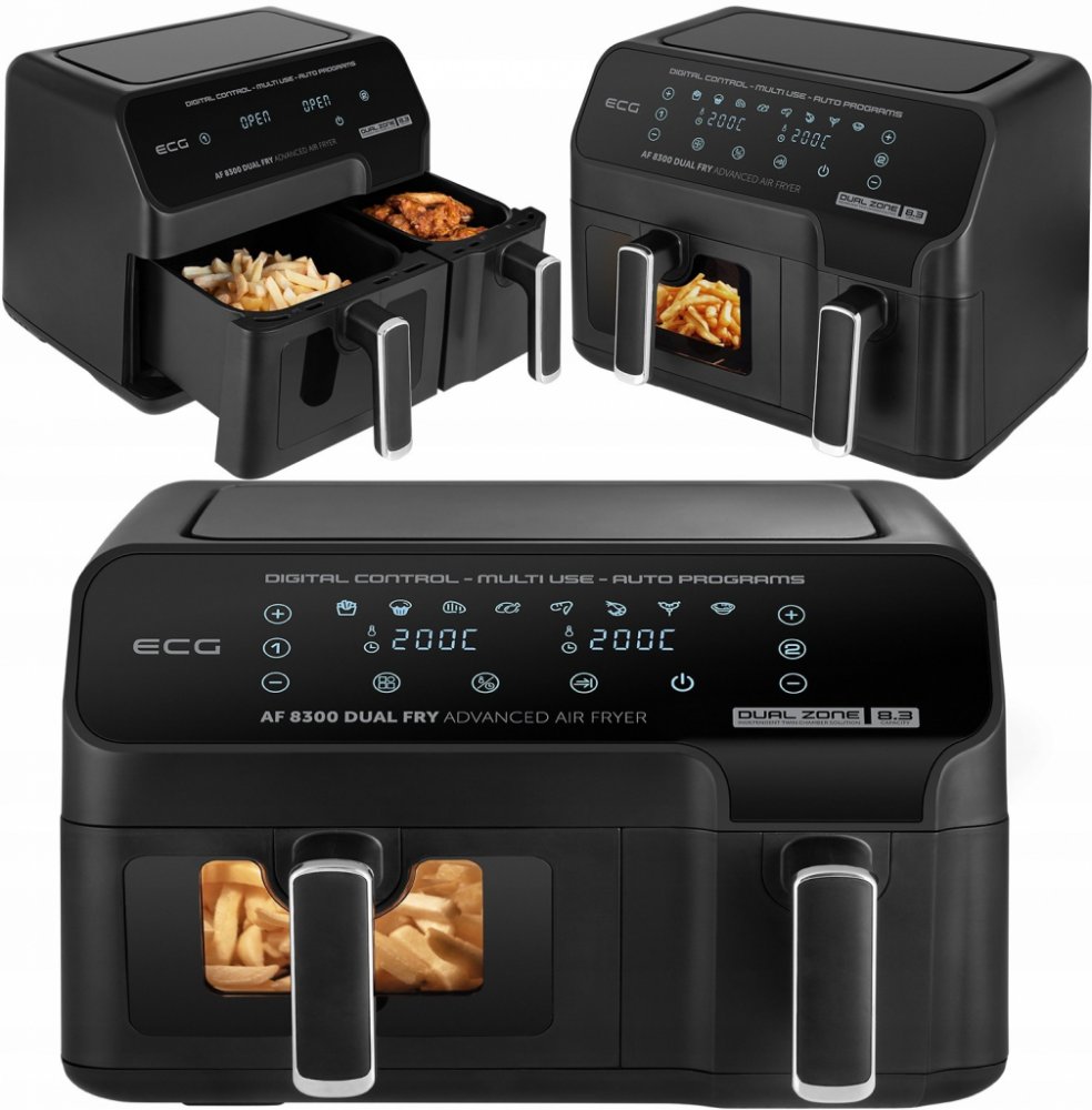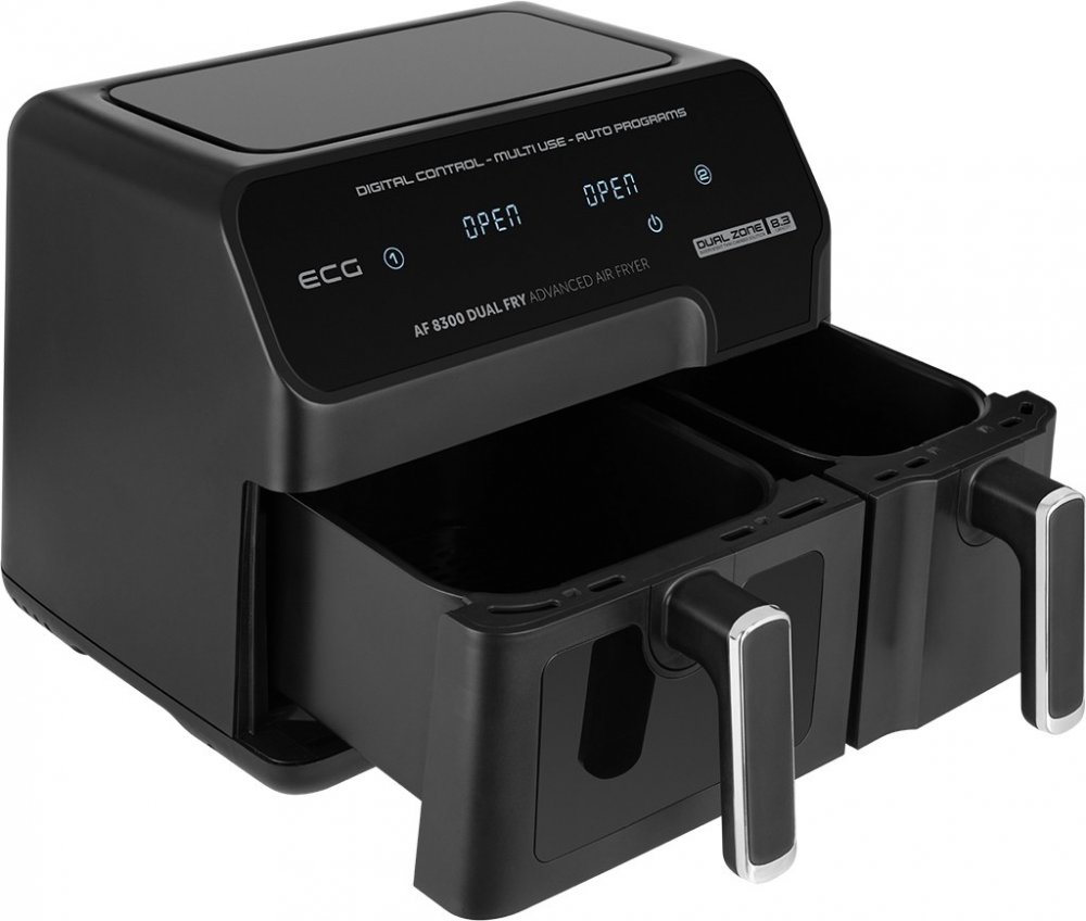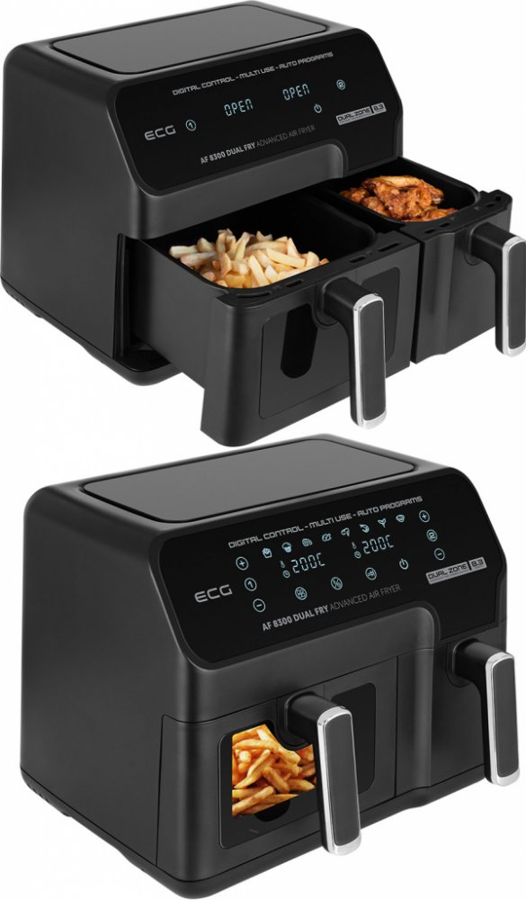 Pokud si rádi dopřejete křupavé hranolky, krokety nebo třeba kuřecí křidýlka, ale zároveň se chcete stravovat zdravě, máme pro vás skvělý tip. Pořiďte si horkovzdušnou fritézu ECG AF 8300 Dual Fry a připravujte své oblíbené pokrmy o poznání zdravěji! Tento moderní spotřebič využívá systém rychle cirkulujícího horkého vzduchu, takže v něm neodolatelné smažené, pečené či zapékané pochoutky nachystáte s několika málo kapkami oleje, nebo dokonce úplně bez něj. Velkou výhodou je zde přitom i možnost přípravy dvou různých jídel najednou, kterou zaručuje přítomnost 2 nezávislých varných komor (každá z nich může mít nastavený jiný program či teplotu). S horkovzdušnou technologií, kterou fritéza ECG využívá, je navíc příprava pokrmů velmi rychlá a také energeticky úsporná. Nejenže vám tedy dokáže zajistit zdravější životní styl, ale také vám ušetří čas a peníze.