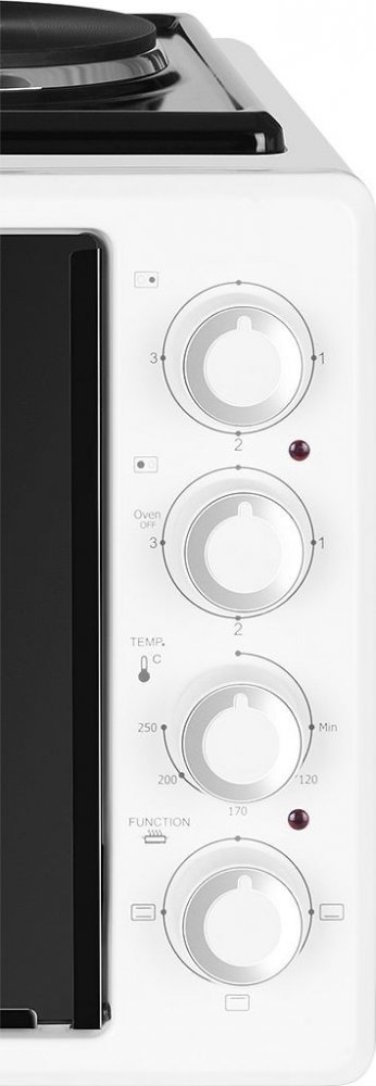 Jednoduchá obsluha pomocí 4 ovládacích prvků (2 knoflíky pro plotýnky, 1 knoflík pro funkce trouby a 1 knoflík pro nastavení teploty)