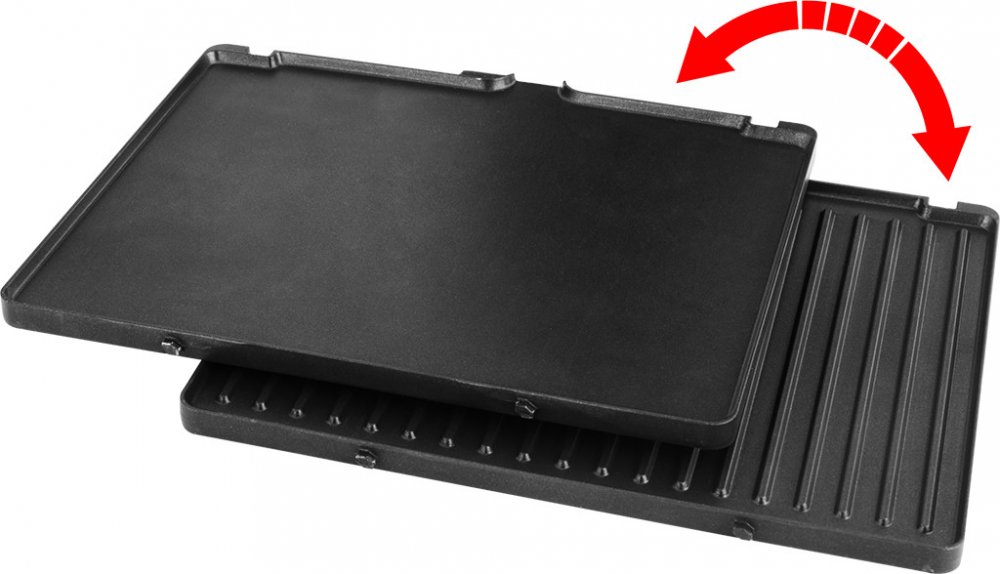 Oboustranné desky zaručují skutečně multifunkční využití grilu. Profilovaný povrch má skutečně univerzální využití a hodí se k přípravě příloh, zeleniny nebo k zapékání tortill či panini. Hladký povrch ocení milovníci šťavnatých steaků či burgerů. Připravíte na něm také vejce či omelety.