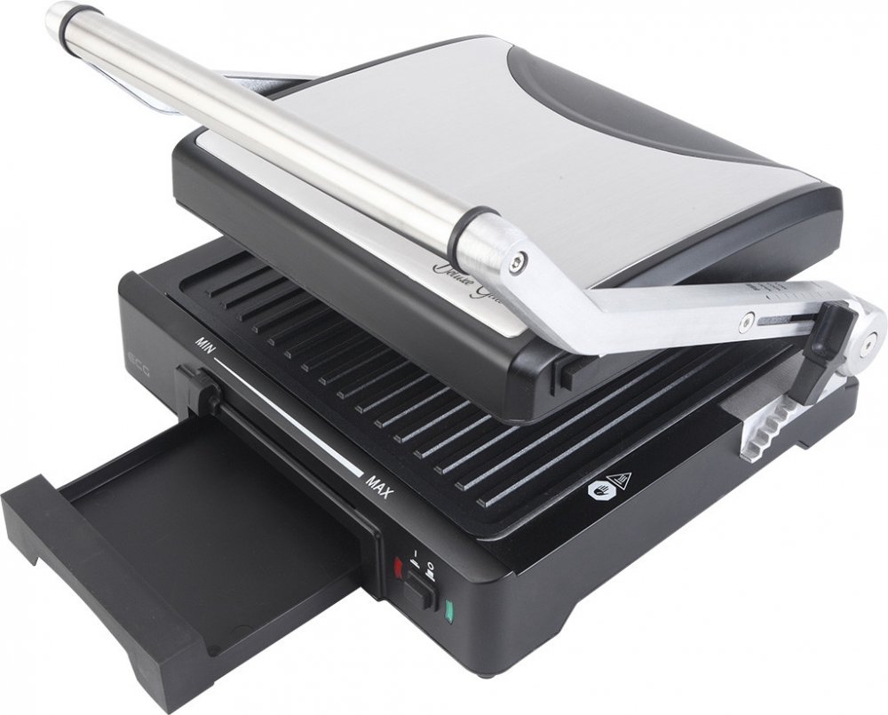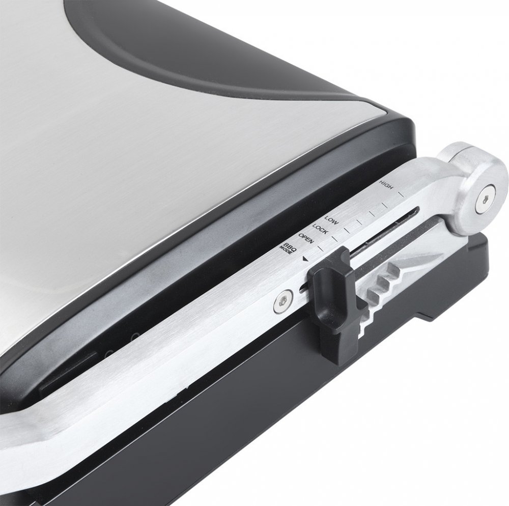 • 3 provozní polohy – pro zapékání, grilování a BBQ• Nastavitelná výška grilovacích desek• Odnímatelné grilovací desky s nepřilnavou povrchovou úpravou• Variabilní nastavení teploty• Vyjímatelná odkapávací miska na tuk• Příslušenství: stěrka pro odstranění oleje• Max. příkon 2000 W