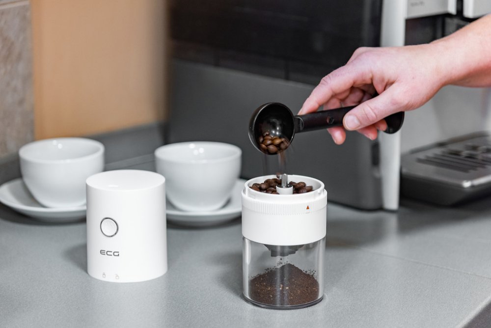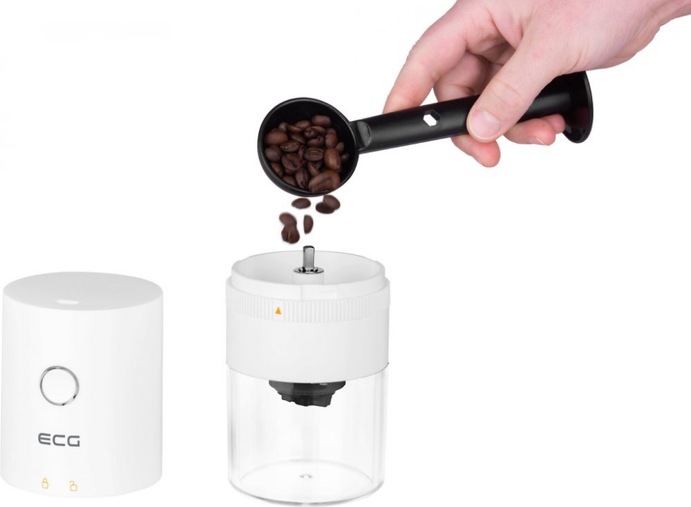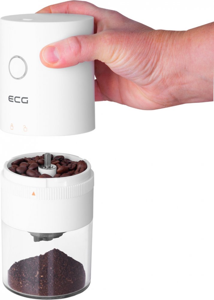 Mlýnek na kávu ECG KM 150 Minimo White Připravte si čerstvě namletou kávu pro všechny druhy kávy s elektrickým mlýnkem ECG KM 150 MInimo White. Tento cestovní mlýnek nabízí kompaktní design a akumulátorový provoz s USB-C nabíjením, takže si ho můžete vzít nejen na dovolenou, ale i do práce. A zároveň vyniká nízkou hlučností, takže nebudete obtěžovat okolí. Díky praktické rychlonabíjecí funkci nemusíte dlouho čekat – sto procent kapacity získá baterie mlýnku za cca 1,5 hodiny. Čistící kartáček zajistí snadnou údržbu. Nastavení mletí Kávomlýnek umožňuje nastavení přesné hrubosti mletí – vybírat můžete od ultra jemné až po extra hrubou mletou kávu. Vstupní zásobník mlýnku pojme až 25 g kávových zrn, kapacita zásobníku na pomletou kávu je pak až 120 ml. KM 150 Minimo White je vybaven keramickými mlecími kameny kónického tvaru, takže dokáže umlít kávová zrna opravdu precizně. Mlecí kameny při mletí redukují teplotu, čímž zachovávají přirozenou kávovou chuť i aroma. Objednávejte pod kat. číslem KM 150 WHITE