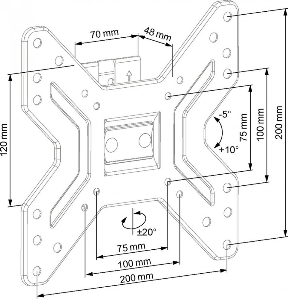 Držák na TV, VESA 200x200, maximální nosnost 25kg, vhodné pro úhlopříčky 17"-42", možnost nastavení vzdálenosti od zdi 48mm,