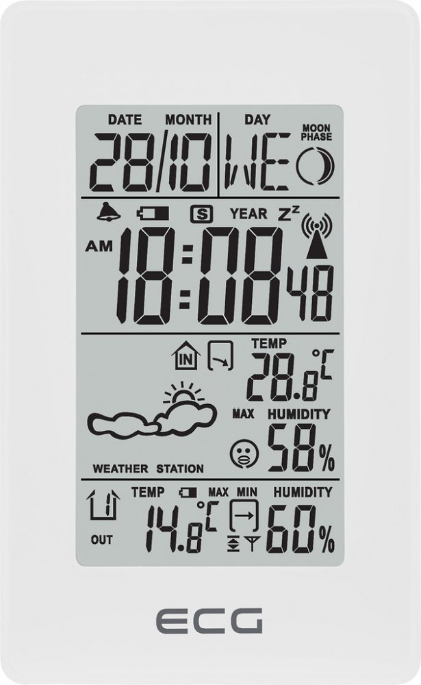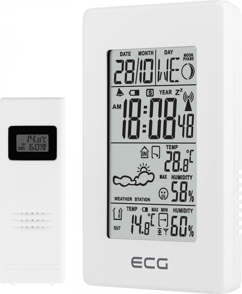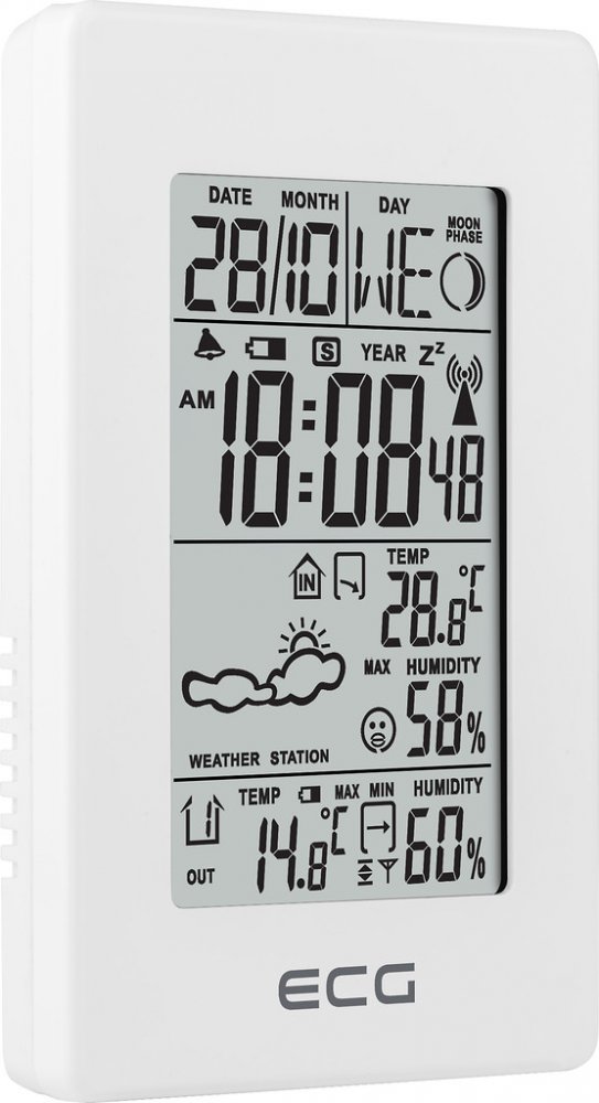 Vytváříte si časový harmonogram na základě předpovědi počasí? Pak vás jistě zaujme domácí meteostanice ECG, se kterou zjistíte, jaký kousek ze šatníku zvolit při procházce. Měřená data zahrnují hodnoty, ke kterým patří teplota a relativní vlhkost. Naměřené údaje jsou zobrazovány na displeji s nastavením jasu. Meteostanice ECG snímá vnitřní i venkovní hodnoty. Zásadní vlastnosti meteostanice ECG MS...