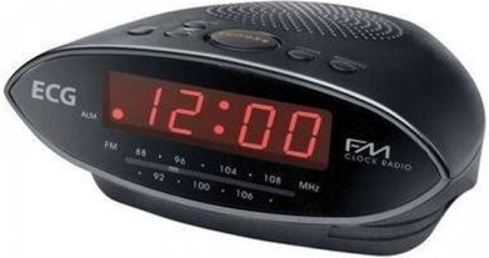 FM tuner, červený displej, buzení tónem nebo rádiem, funkce Sleep, záloha při výpadku el. proudu, napájení síť/baterie 9V (není součástí)