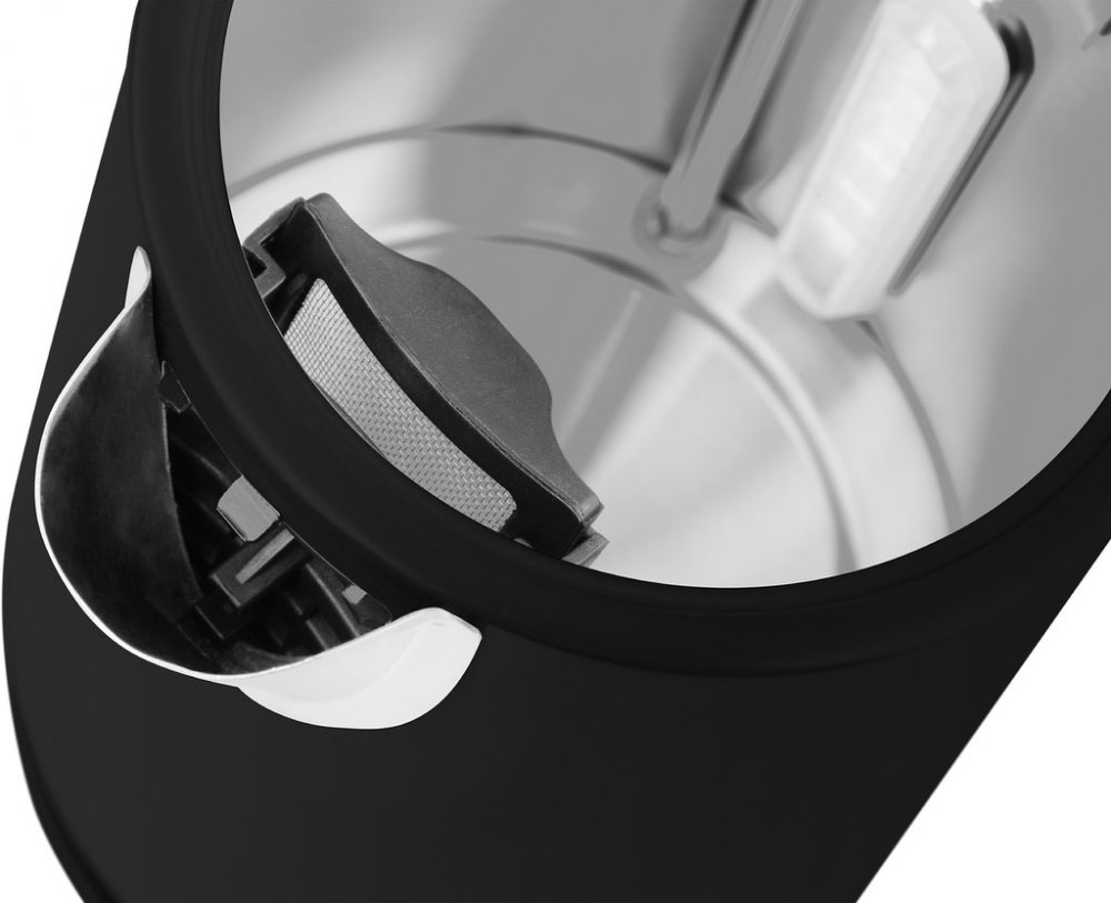 S konvicí, která má styl, získáte nejen spolehlivého pomocníka pro každodenní přípravu čaje a kávy, ale i vkusnou ozdobu kuchyně. Má černou nerezovou povrchovou úpravu a stylové dřevěné prvky. Otevírání víka stisknutím tlačítka. Velký objem zajistí přípravu nápoje pro celou rodinu. Spolehlivé fungování tohoto kuchyňského pomocníka zajišťuje kvalitní středový konektor s 360° otočnou základnou, která disponuje i praktickým navíjením kabelu. Zárukou komfortního používání je tu pak ukazatel vodní hladiny či světelná signalizace provozu. A co se týče údržby konvice, tu máte pod palcem díky skrytému topnému tělesu a vyjímatelnému filtru proti zbytkům vodního kamene, který se dá jednoduše omývat.Bezpečný provoz konvice zaručuje sada několika ochranných prvků. Praktická je zde např. integrovaná ochrana proti přehřátí či bezpečnostní zajištění víka v uzavřené poloze. Dále jistě oceníte tepelně izolovanou rukojeť, díky níž se při přípravě čaje či kávy nespálíte.Samozřejmostí je zde i funkce automatického vypnutí, která bezpečný provoz konvice ještě podtrhává – spotřebič se sám vypne, když jej zapnete bez vody, když dosáhne bodu varu, nebo když ho vyjmete ze základny.Specifikace:
