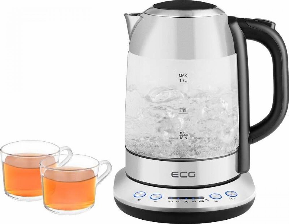 Rychlovarná konvice v nerezovém provedení v kombinaci s tvrzeným sklem. Mezi hlavní přednosti patří možnost nastavení teploty (40, 60, 70, 80 a 100 °C) a funkce udržování teploty, což ocení maminky s malými dětmi nebo milovníci zelených a bílých čajů. Veškeré funkce se ovládají na přehledném, modře podsvíceném ovládacím panelu.