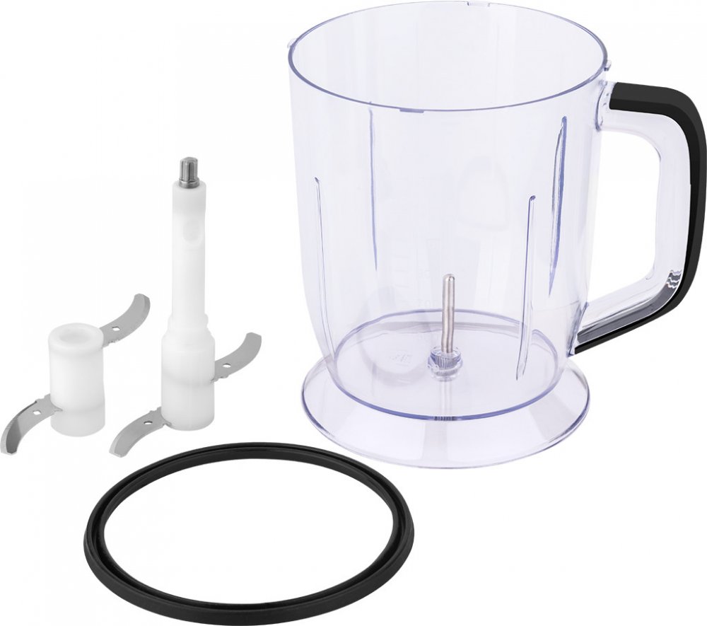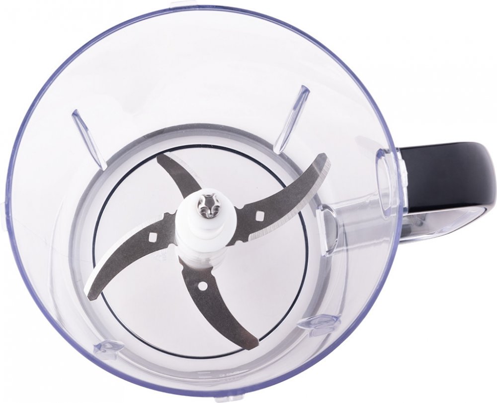 Uvnitř plastové nádoby o objemu 1,5 l se nachází nerezový sekací nůž. Do mixovací nádoby vložíte suroviny a umístíte na ni základnu s motorem. Na její horní části najdete velké tlačítko, kde si vyberete ze 2 rychlostí.