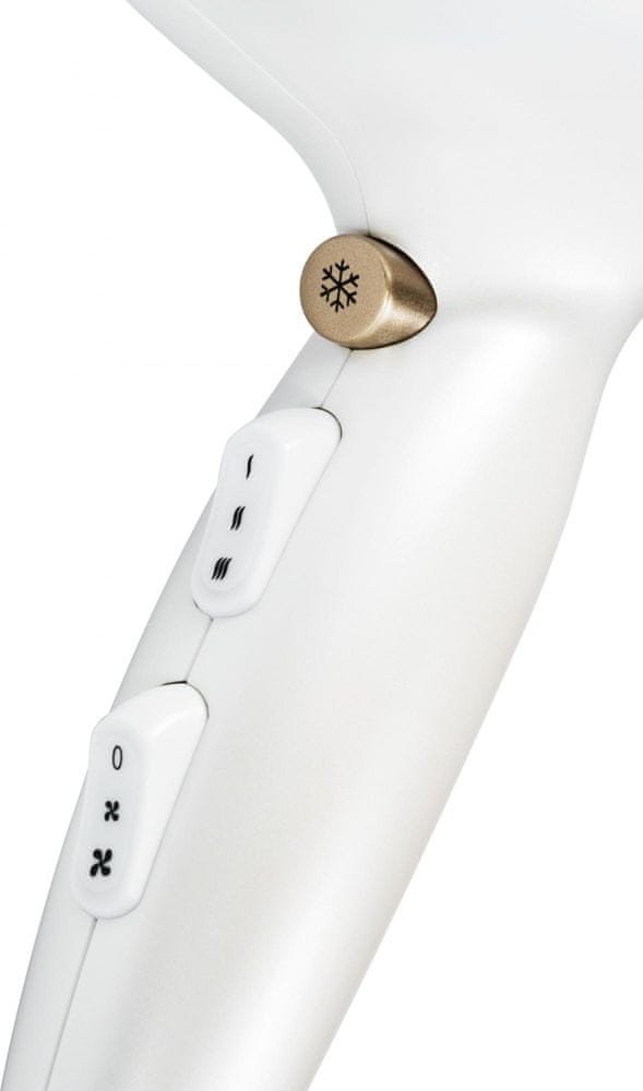 Vysoušeč vlasů ECG VV2200 3 stupně teploty 2 rychlosti Funkce chladného vzduchu Ochrana proti přehřátí Příkon (W) 2200 Napětí (V/Hz) 220-240 50/60 Druh napájení Síťový Délka kabelu (cm) 177 Hlučnost (dB) 83 Pojistka proti přehřátí Výkonný fén ECG je připraven zatraktivnit vaše vlasy. Fén můžete nastavit na optimální nastavení, můžete si vybrat mezi 3 úrovněmi teploty vzduchu a 2 úrovněmi výkonu. Objemový difuzér a vzduchová tryska pomáhají vytvořit správný objem vlasů nebo rychle a bezpečně vysušit vlasy. K dispozici je režim chladného vzduchu, který je vhodný pro závěrečné tvarování a fixaci vlasů. Výkonný motor o příkonu 2000 W je vhodný i pro rychlé a snadné vysoušení dlouhých vlasů. Ergonomický design usnadňuje a zpříjemňuje používání. Rukojeť je tvarovaná tak, aby optimální rozmístění všech ovládacích tlačítek bylo možné pro praváky i leváky. K dispozici je tepelná pojistka, která chrání motor před přehřátím. Závěsné poutko na těle výrobku pomáhá při jeho ukládání v koupelně. Elegantní bílý design vypadá velmi stylově a skvěle se hodí do každé koupelny. Tento fén je uživatelsky velmi přívětivý a jeho používání vás bude bavit. 3 úrovně teploty vzduchu 2 úrovně výkonu Režim studeného vzduchu Ochrana proti přehřátí Ergonomický design Vzduchová tryska Difuzér a koncentrátor Závěsné poutko Příkon 2200 W Jmenovité napětí: 220-240 V 50-60 Hz Jmenovitý příkon: 2200 W Hlučnost: ≤ 85 dB.
