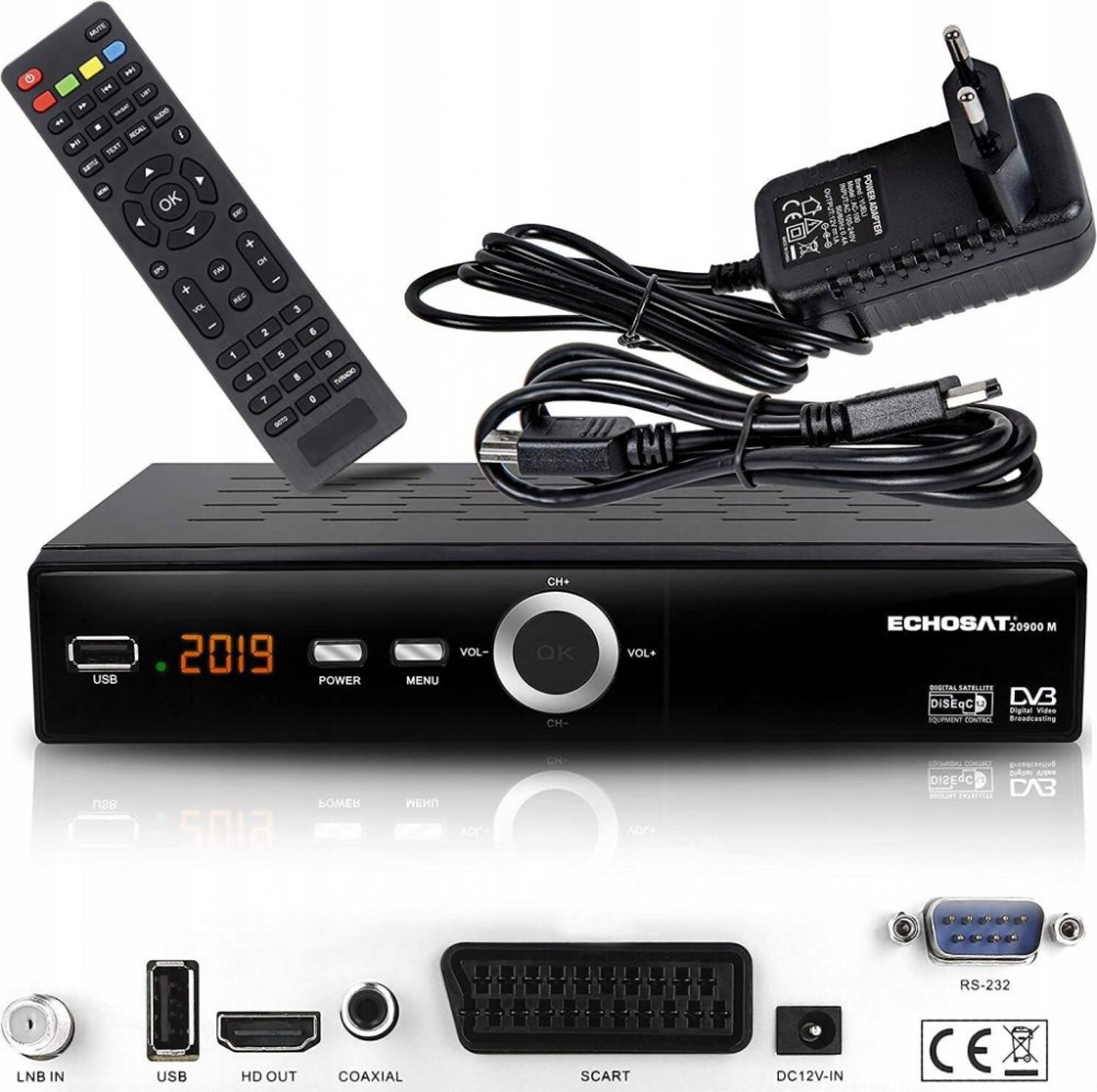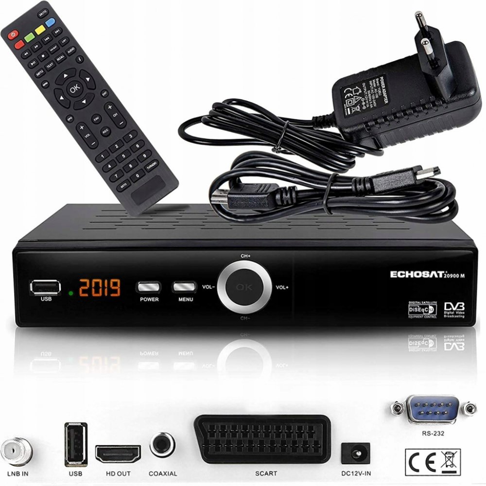 Echosat konektor antény;HDMI;digitální koaxiální výstup;USB;SCART (Euro);RS-23