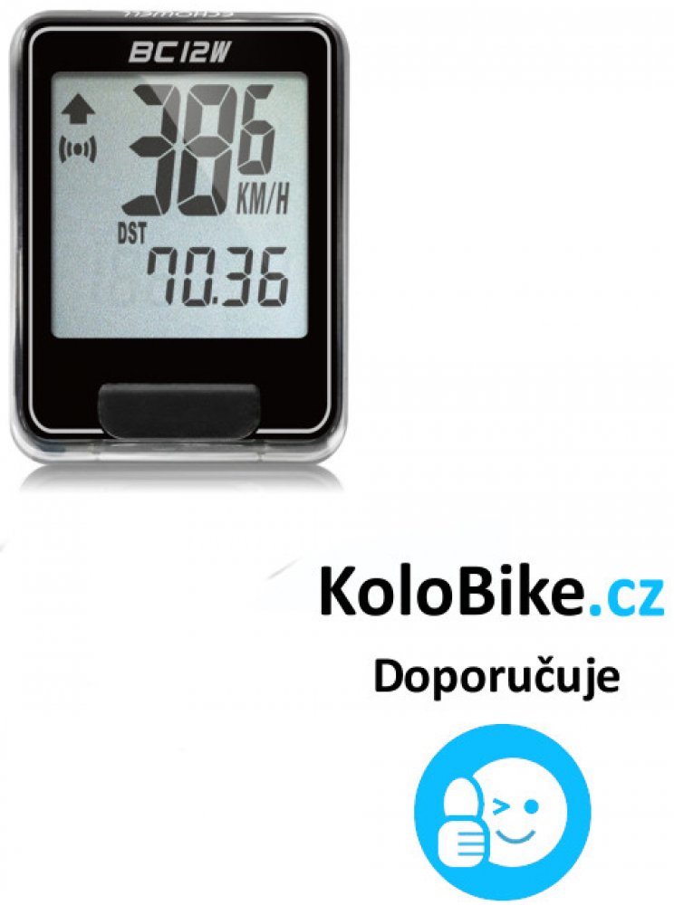 Nový voděodolný bezdrátový cyklocomputer Echowell BC12W. Jednoduché ovládání jedním tlačítkem. Dvanáct funkcí, dvě barevné provedení, dvouřádkový displey, indikace stavu baterie. Cyklocomputer Echowell BC12W