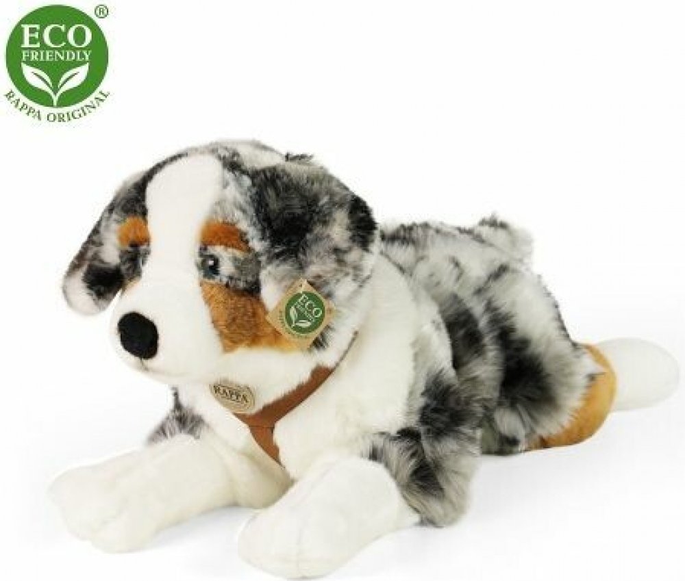 Krásný plyšový australský ovčák o velikosti 61 cm je ručně ušitý z vysoce kvalitní, jemné plyše, a díky tomu vypadá jako živý. Je vítaným společníkem nejen v každém dětském pokojíčku. Je součástí exkluzivní kolekce plyšových hraček RAPPA. Rozhodli jsme se jít zelenou cestou co nejméně zatěžující životní prostředí - cestou ECO-FRIENDLY. Co to vlastně ECO-FRIENDLY znamená? Výplň plyšové hračky je vyrobena z recyklovaných PET lahví. Tento materiál je zcela bezpečný, na omak nerozeznatelný od standardní výplně a plně atestovaný pro bezpečnost i těch nejmenších.
