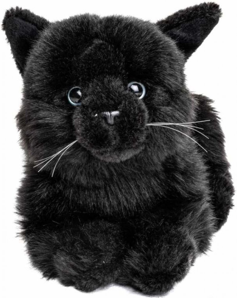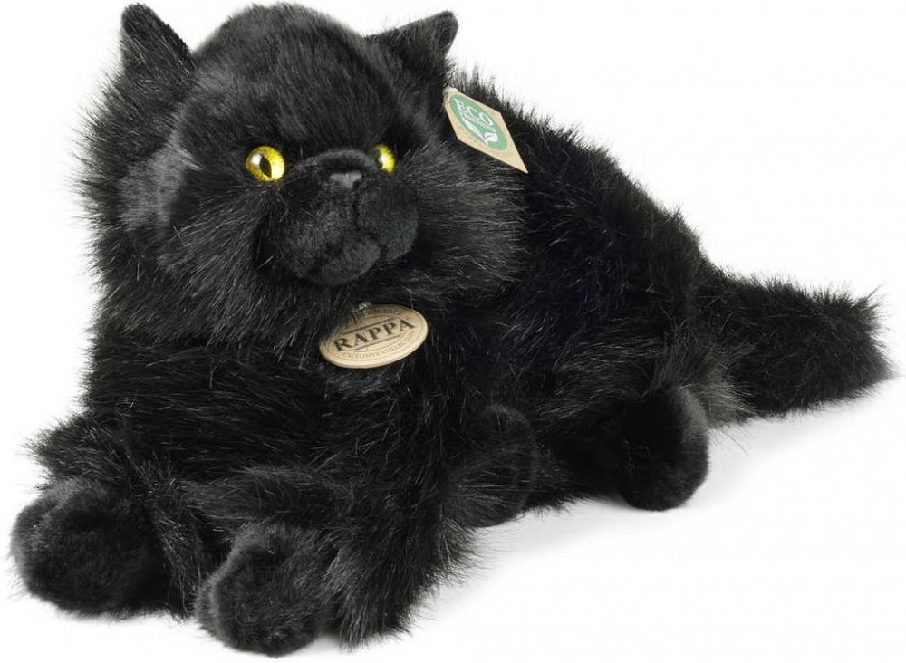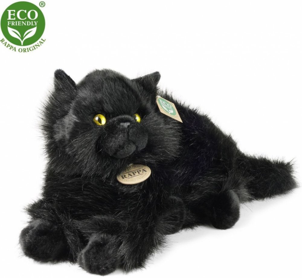Ležící plyšová černá perská kočička pro všechny milovníky plyšových zvířátek.