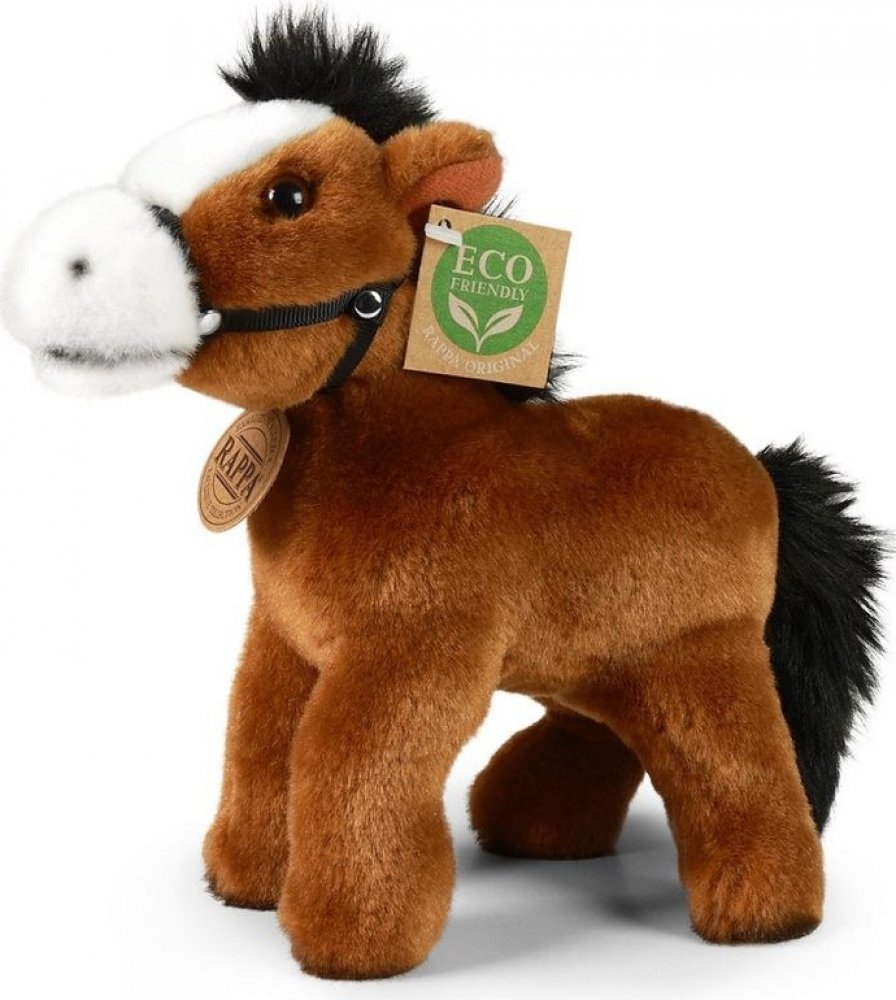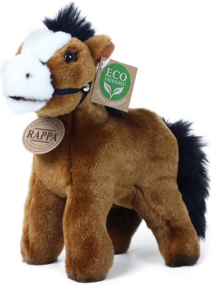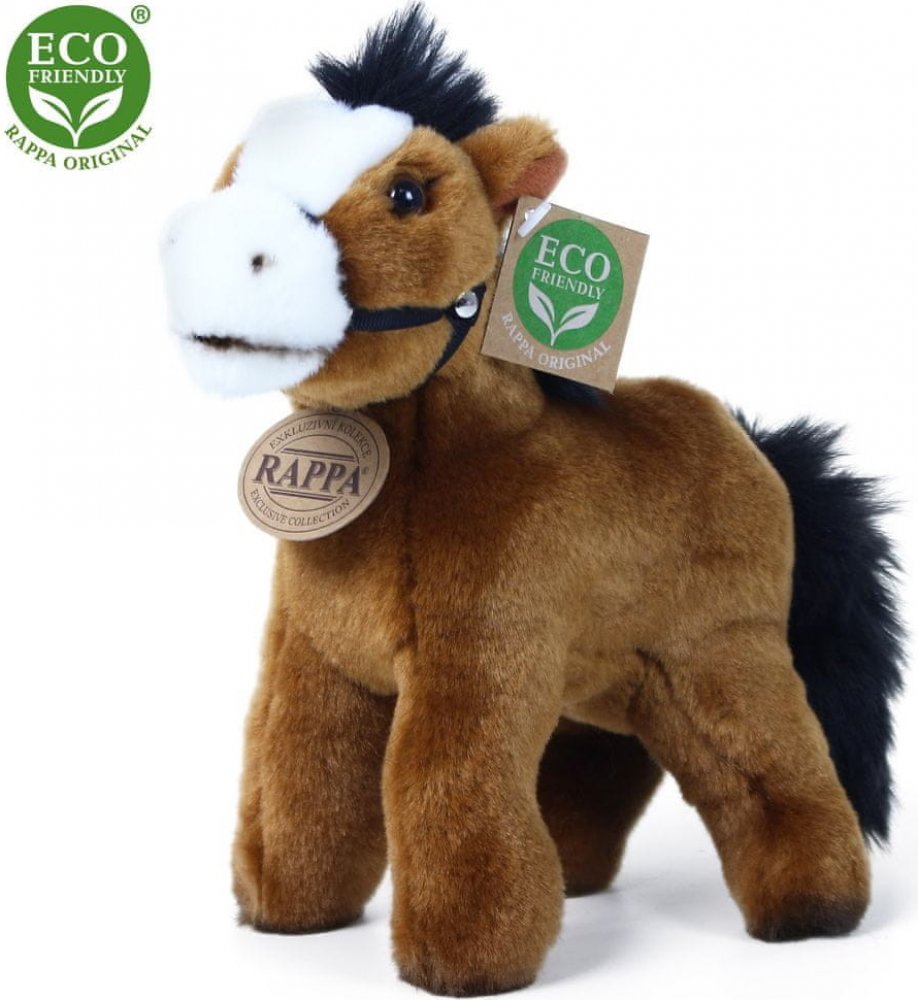Krásný plyšový koník o velikosti 20 cm. Kůň je vyroben z vysoce kvalitní plyše a je tak součástí exkluzivní kolekce plyšových hraček RAPPA. Co to vlastně ECO-FRIENDLY znamená? Výplň plyšové hračky je vyrobena z recyklovaných PET lahví. Tento materiál je zcela bezpečný, na omak nerozeznatelný od standardní výplně a plně atestovaný pro bezpečnost i těch nejmenších. Rozhodli jsme se jít zelenou cesto...