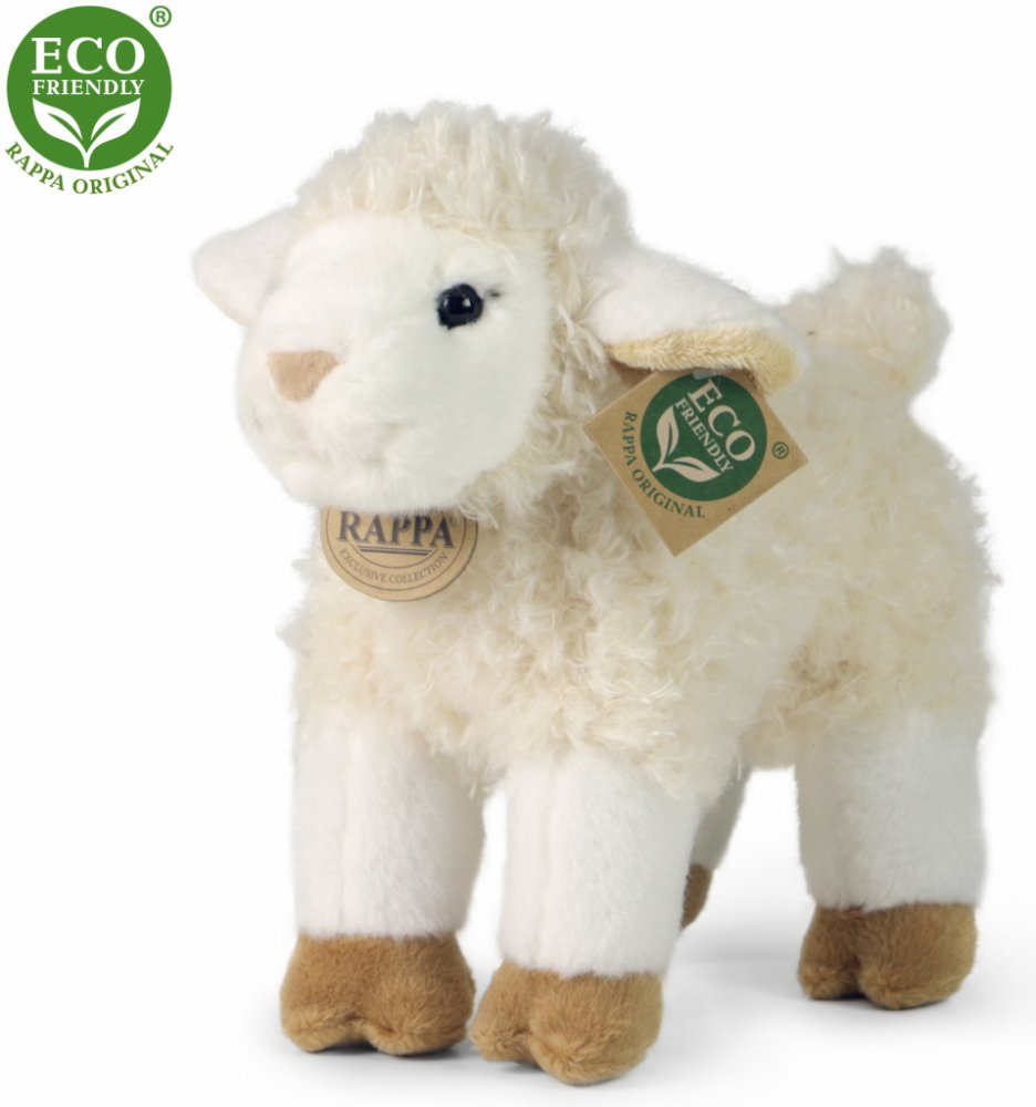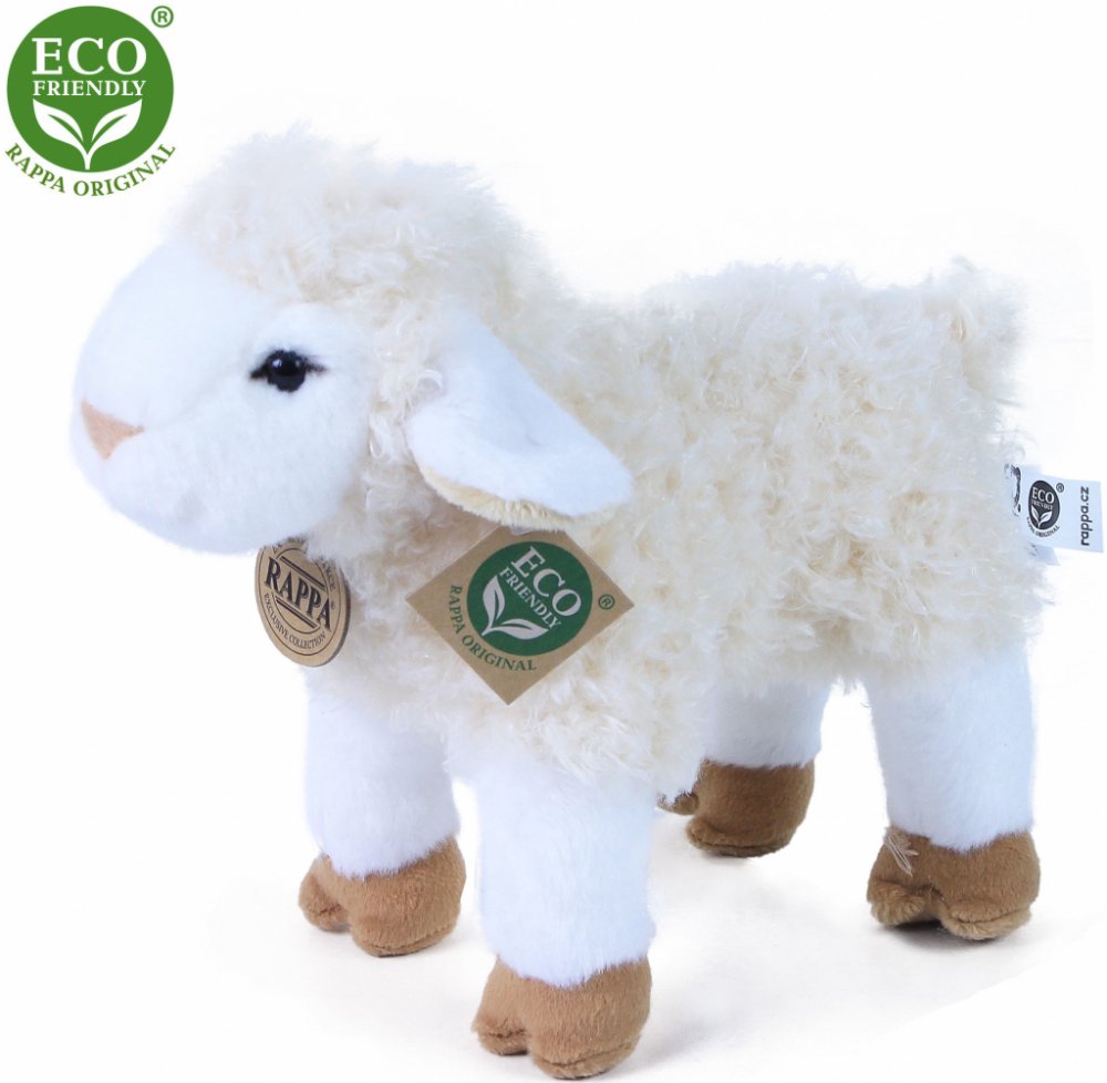Plyšová ovečka o velikosti 23 cm je ručně ušitá z vysoce kvalitní, jemné plyše, a díky tomu vypadá jako živá.