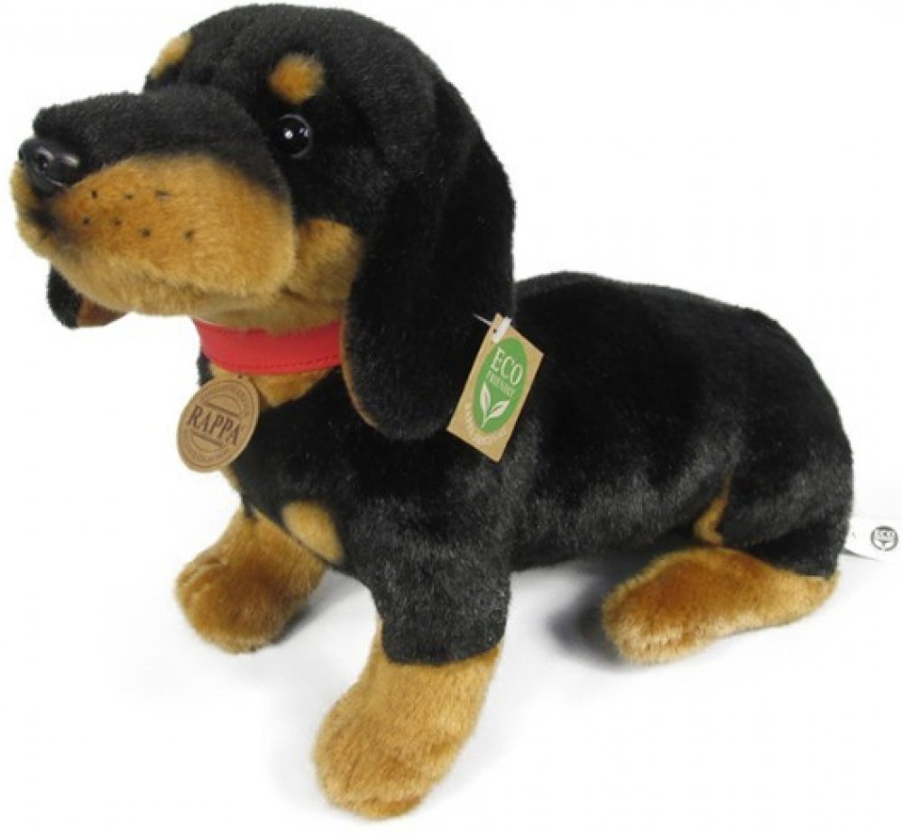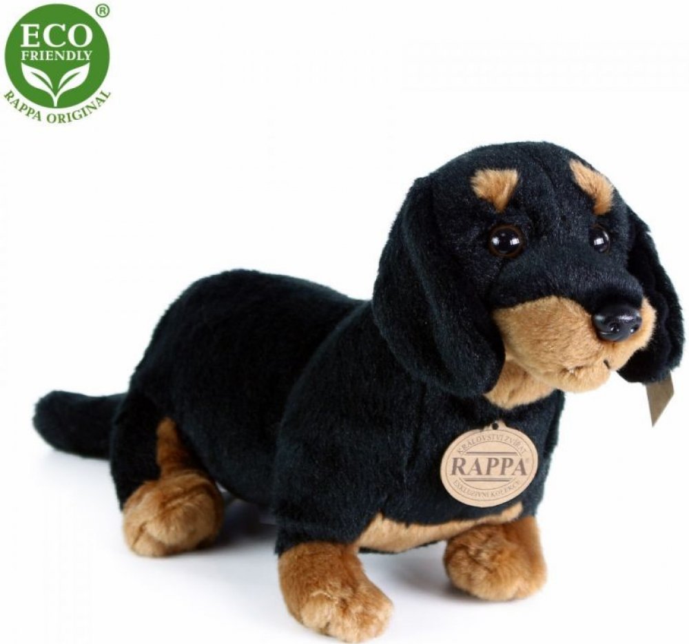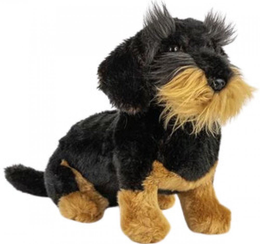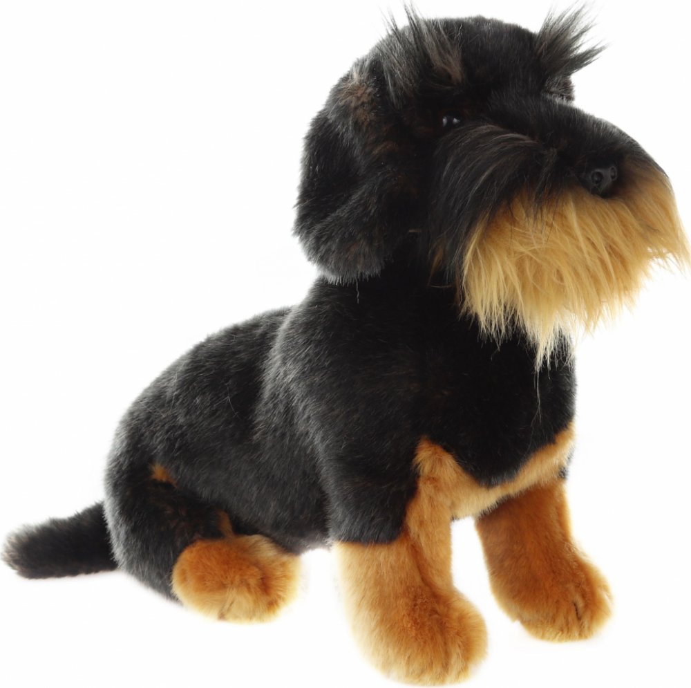 Roztomilý černohnědý psík jezevčík drsnosrstý z velmi kvalitní plyše, s ekologickou výplní, pro všechny milovníky plyšových zvířátek.