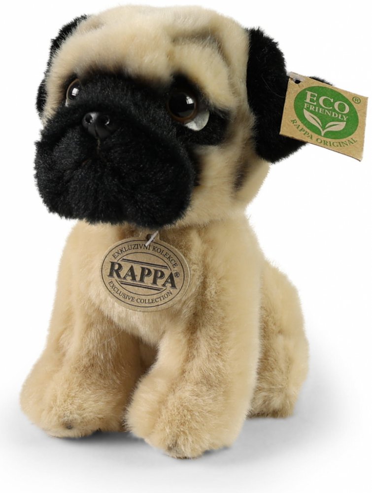 Plyšový pes mops ve velikosti 18 cm je ručně ušitý z vysoce kvalitní, jemné plyše, a díky tomu vypadá jako živý.