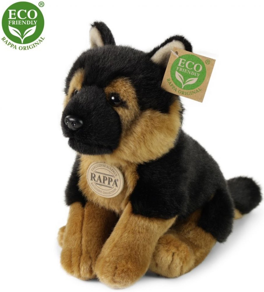 Roztomilý sedící pejsek štěňátko něměcký ovčák, zvířátko z kvalitní plyše, psík štěně pro všechny milovníky plyšových zvířátek.
