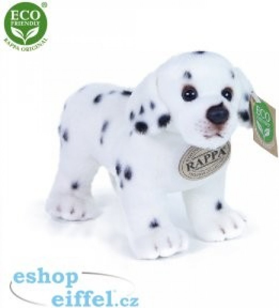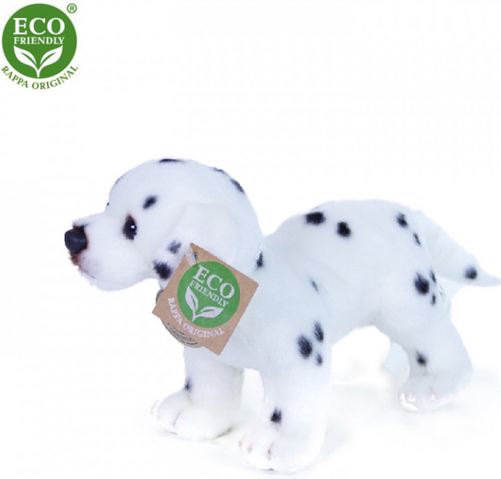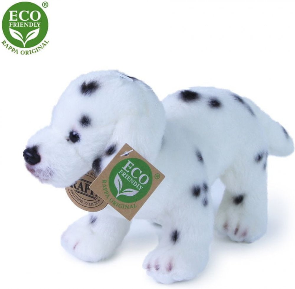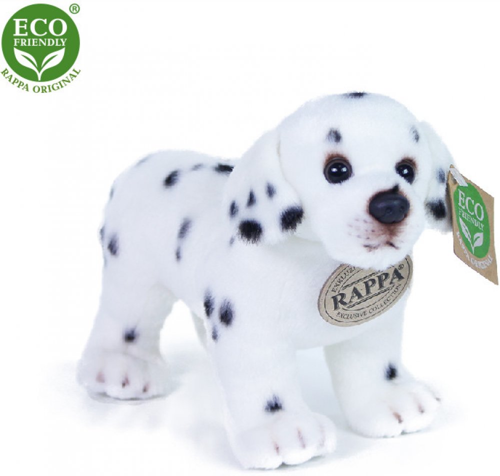 Plyšový dalmatin o velikosti 20 cm je ručně ušitý z vysoce kvalitní, jemné plyše, a díky tomu vypadá jako živý. Pro svůj roztomilý výraz se stává vítaným společníkem v jakékoliv chvíli. Je součástí exkluzivní kolekce plyšových hraček RAPPA. Rozhodli jsme se jít zelenou cestou co nejméně zatěžující životní prostředí - cestou ECO-FRIENDLY. Co to vlastně ECO-FRIENDLY znamená? Výplň plyšové hračky je vyrobena z recyklovaných PET lahví. Tento materiál je zcela bezpečný, na omak nerozeznatelný od standardní výplně a plně atestovaný pro bezpečnost i těch nejmenších.