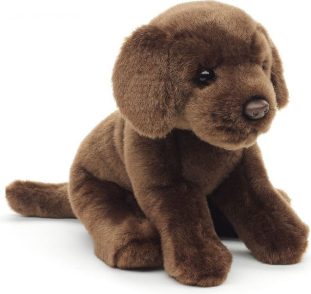Plyšový pes labrador sedící s vodítkem o rozměru cca 30 x 21 x 16 cm.