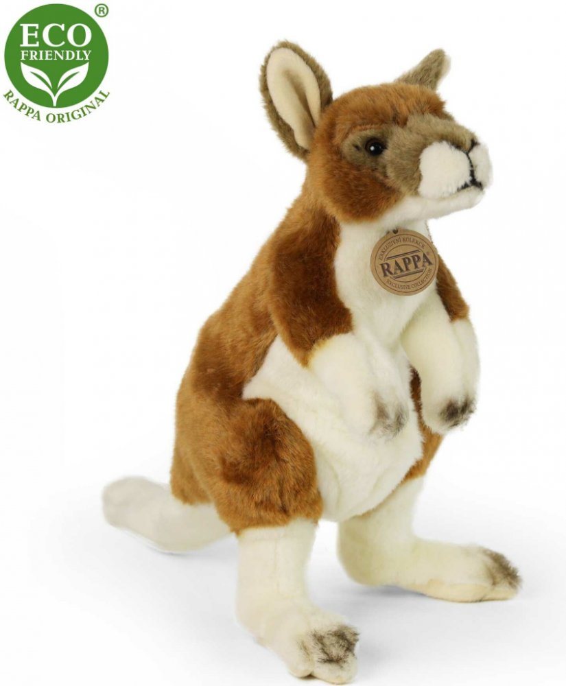 RAPPA - Plyšový klokan 30 cm ECO-FRIENDLY Plyšový klokan je ručně ušitý z vysoce kvalitní, jemné plyše, a díky tomu vypadá jako živý. Tento plyšový vačnatec měří 30 cm a je součástí exkluzivní kolekce plyšových hraček RAPPA. Rozhodli jsme se jít zelenou cestou co nejméně zatěžující životní prostředí - cestou ECO-FRIENDLY. Co to vlastně ECO-FRIENDLY znamená? Výplň plyšové hračky je vyrobena z recyklovaných PET lahví. Tento materiál je zcela bezpečný, na omak nerozeznatelný od standardní výplně a plně atestovaný pro bezpečnost i těch nejmenších.