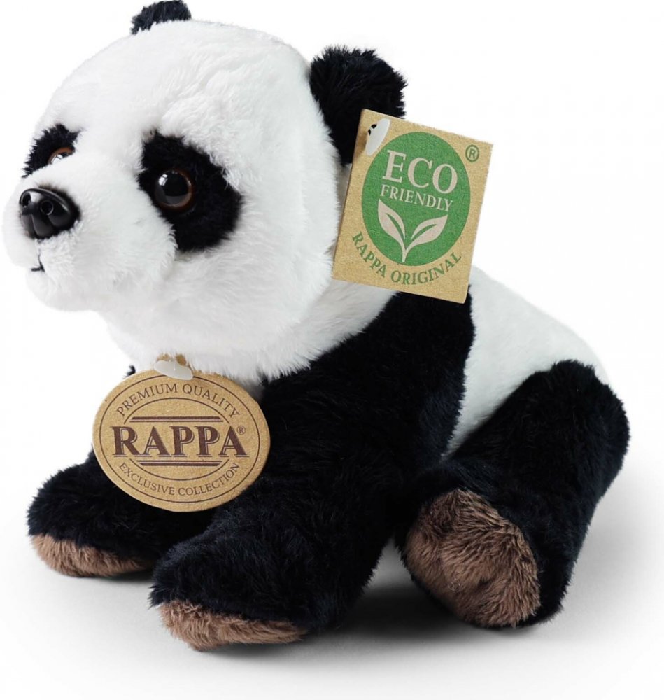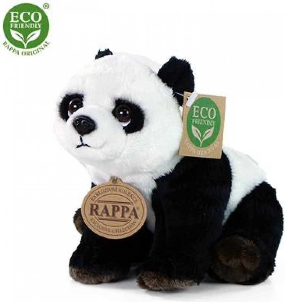 Nádherná plyšová panda ve velikosti 18 cm. Panda je vyrobena z vysoce kvalitní plyše a je tak součástí exkluzivní kolekce plyšových hraček RAPPA. Co to vlastně ECO-FRIENDLY znamená? Výplň plyšové hračky je vyrobena z recyklovaných PET lahví. Tento materiál je zcela bezpečný, na omak nerozeznatelný od standartní výplně a plně atestovaný pro bezpečnost i těch nejmenších. Rozhodli jsme se jít zelenou...