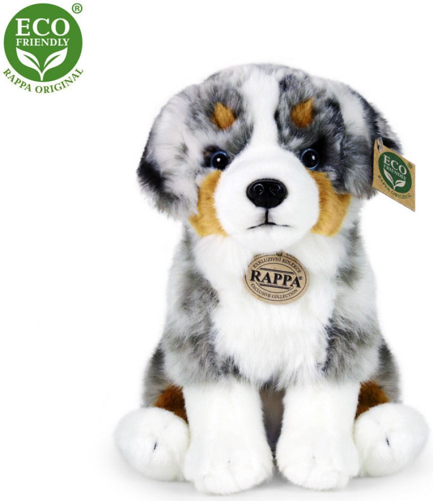 Plyšový Australský ovčák o velikosti 27 cm je ručně ušitý z vysoce kvalitní jemné plyše a díky tomu vypadá jako živý. Je vítaným společníkem nejen v každém dětském pokojíčku. Je součástí exkluzivní kolekce plyšových hraček RAPPA. Rozhodli jsme se jít zelenou cestou co nejméně zatěžující životní prostředí - cestou ECO-FRIENDLY. Co to vlastně ECO-FRIENDLY znamená Výplň plyšové hračky je vyrobena z recyklovaných PET lahví. Tento materiál je zcela bezpečný na omak nerozeznatelný od standardní výplně a plně atestovaný pro bezpečnost i těch nejmenších.