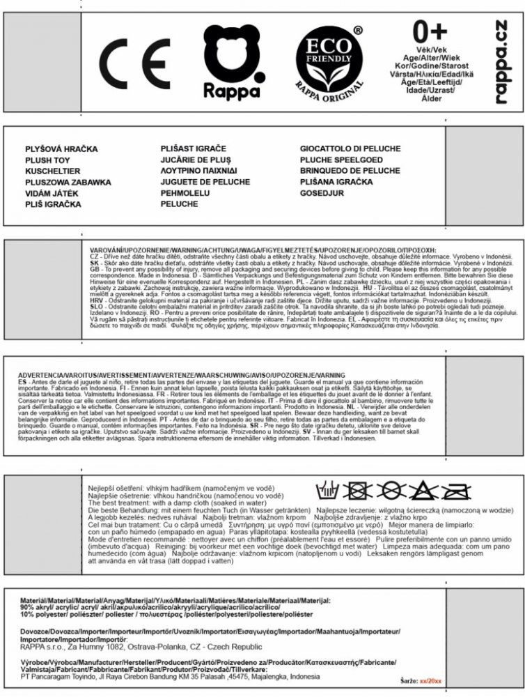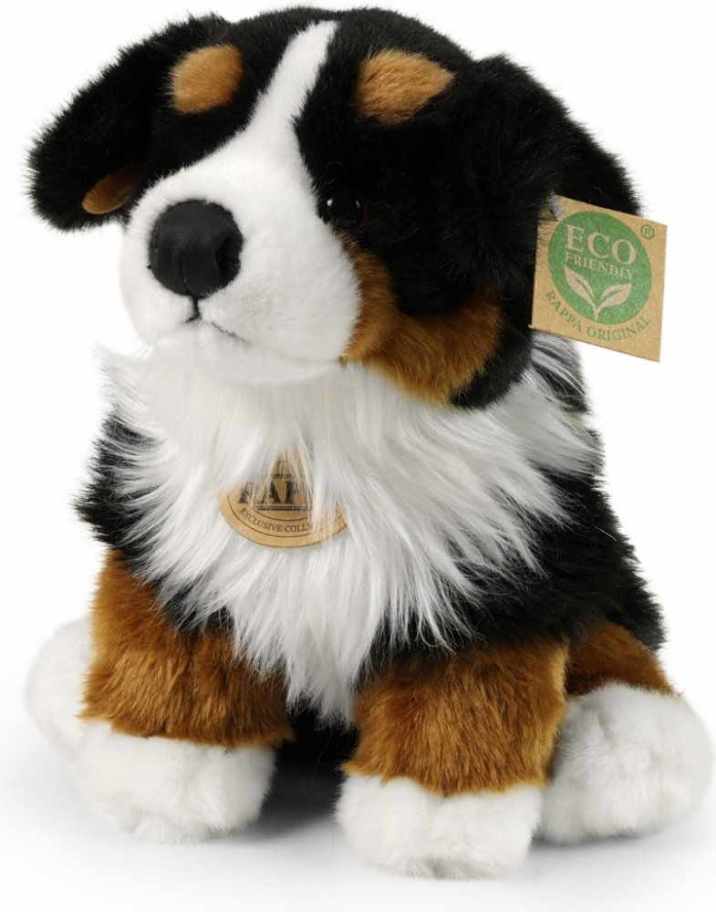Plyšový pes rasy bernský salašnický měří 28 cm a díky těm nejkvalitnějším materiálům se řadí do Exkluzivní kolekce plyšových hraček značky Rappa. Díky ručnímu zpracování každého kusu navíc vypadá jako živý. Proč označení ECO-FRIENDLY? Rappa si je vědoma všech dopadů na životního prostředí, zaměřuje se na udržitelnost a omezení používání plastů na minimum. Proto je výplň hraček vyrobena z recyklovaných materiálů, zejména PET lahví. Ta je však zcela nezávadná a vhodná i pro děti od narození. FUN FACT: Věděli jste, že bernský salašnický díky své přátelské a trpělivé povaze, je často označován za "mírného obra" a skvěle se hodí jako rodinný pes?