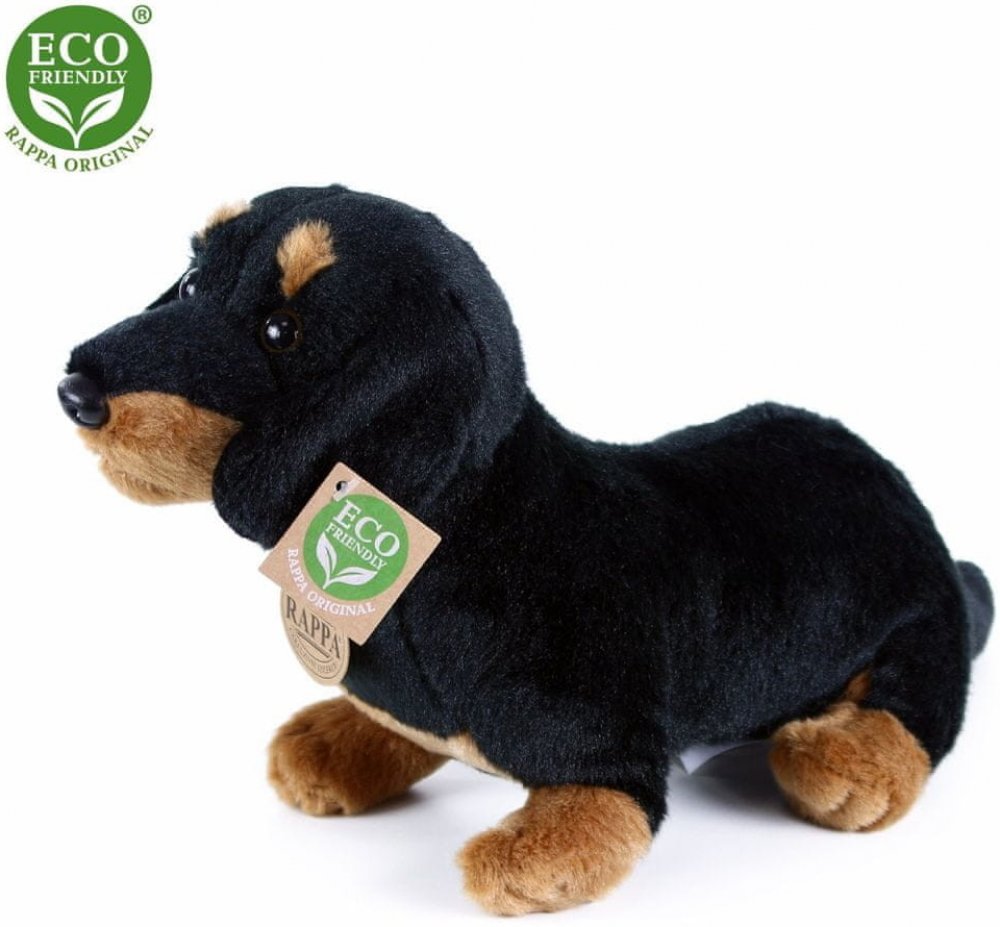Rozkošný plyšový jezevčík nesmí chybět v žádném dětském pokojíčku! Jezevčík je vyroben z exkluzivní, kvalitní plyše a jeho délka činí cca 32 cm. Tento senzační plyšový kousek je ideální i jako dárek. Co to vlastně ECO-FRIENDLY znamená? Výplň plyšové hračky je vyrobena z recyklovaných PET lahví. Tento materiál je zcela bezpečný, na omak nerozeznatelný od standartní výplně a plně atestovaný pro bezp...