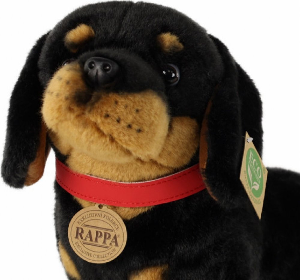 Rozkošný plyšový jezevčík nesmí chybět v žádném dětském pokojíčku! Jezevčík je vyroben z exkluzivní, kvalitní plyše a jeho délka činí cca 32 cm. Tento senzační plyšový kousek je ideální i jako dárek. Co to vlastně ECO-FRIENDLY znamená? Výplň plyšové hračky je vyrobena z recyklovaných PET lahví. Tento materiál je zcela bezpečný, na omak nerozeznatelný od standartní výplně a plně atestovaný pro bezpečnost i těch nejmenších. Rozhodli jsme se jít zelenou cestou co nejméně zatěžující životní prostředí- cestou ECO-FRIENDLY. WARNING: In video was used animation, the plush toy does not move.