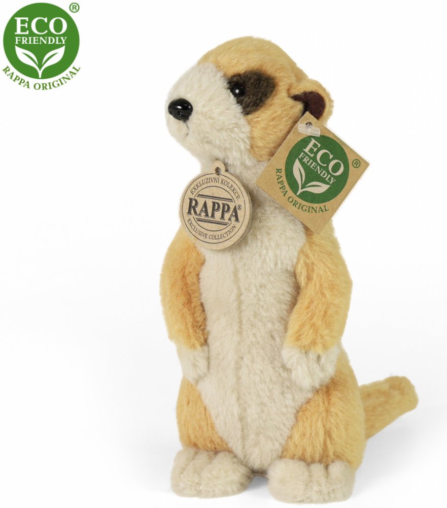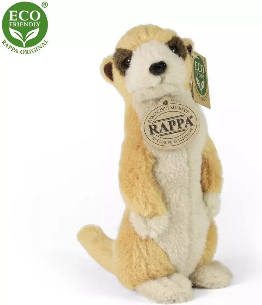 Roztomilá plyšová surikata ve velikosti 18 cm je vyrobena z vysoce kvalitní plyše a je tak součástí exkluzivní kolekce plyšových hraček RAPPA. Co to vlastně ECO-FRIENDLY znamená? Výplň plyšové hračky je vyrobena z recyklovaných PET lahví. Tento materiál je zcela bezpečný, na omak nerozeznatelný od standartní výplně a plně atestovaný pro bezpečnost i těch nejmenších. Rozhodli jsme se jít zelenou ce...
