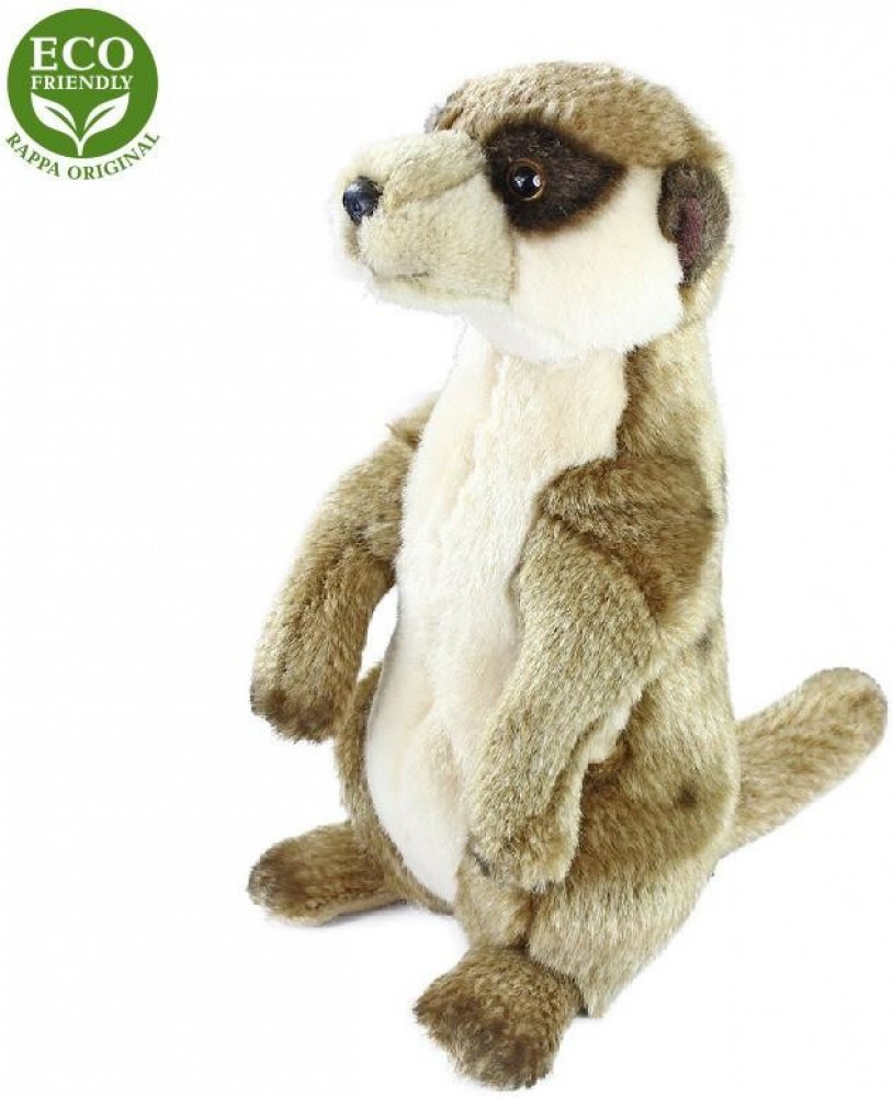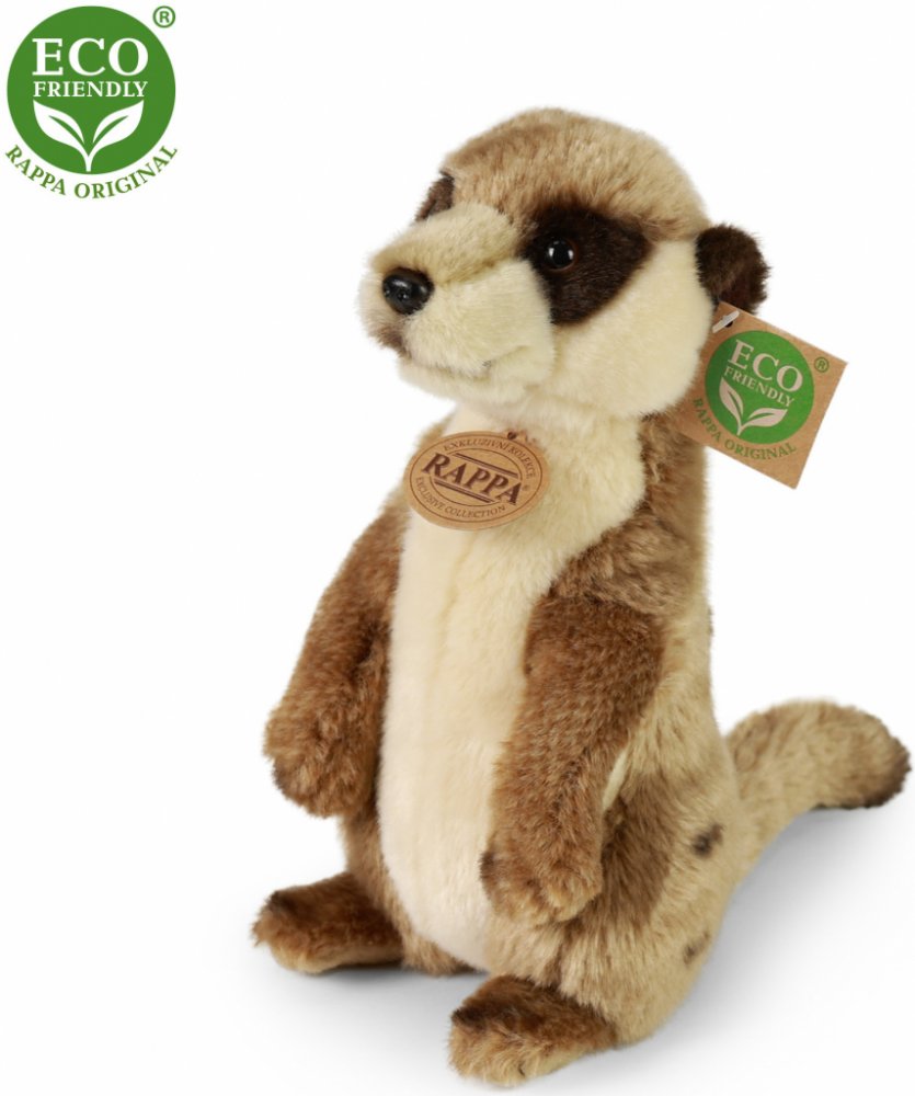 RAPPA - Plyšová surikata 24 cm ECO-FRIENDLY Krásná plyšová surikata o velikosti 24 cm. Surikata je vyrobena z vysoce kvalitní plyše a je tak součástí exkluzivní kolekce plyšových hraček RAPPA. Co to vlastně ECO-FRIENDLY znamená? Výplň plyšové hračky je vyrobena z recyklovaných PET lahví. Tento materiál je zcela bezpečný, na omak nerozeznatelný od standartní výplně a plně atestovaný pro bezpečnost i těch nejmenších. Rozhodli jsme se jít zelenou cestou co nejméně zatěžující životní prostředí- cestou ECO-FRIENDLY.