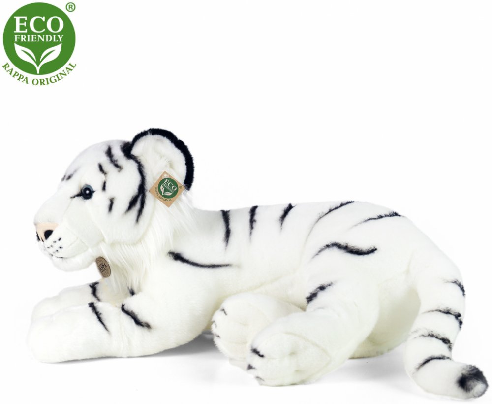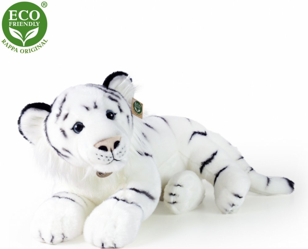 Plyšový tygr o velikosti 60 cm je ručně ušit z vysoce kvalitní, jemné plyše, a díky tomu vypadá jako živý. Pro svůj roztomilý výraz se stává vítaným společníkem v jakékoli chvíli. Je součástí exkluzivní kolekce plyšových hraček RAPPA. Rozhodli jsme se jít zelenou cestou co nejméně zatěžující životní prostředí - cestou ECO-FRIENDLY. Co to vlastně ECO-FRIENDLY znamená? Výplň plyšové hračky je vyrobena z recyklovaných PET lahví. Tento materiál je naprosto bezpečný, na omak nerozeznatelný od standardní výplně a plně atestovaný pro bezpečnost i těch nejmenších.