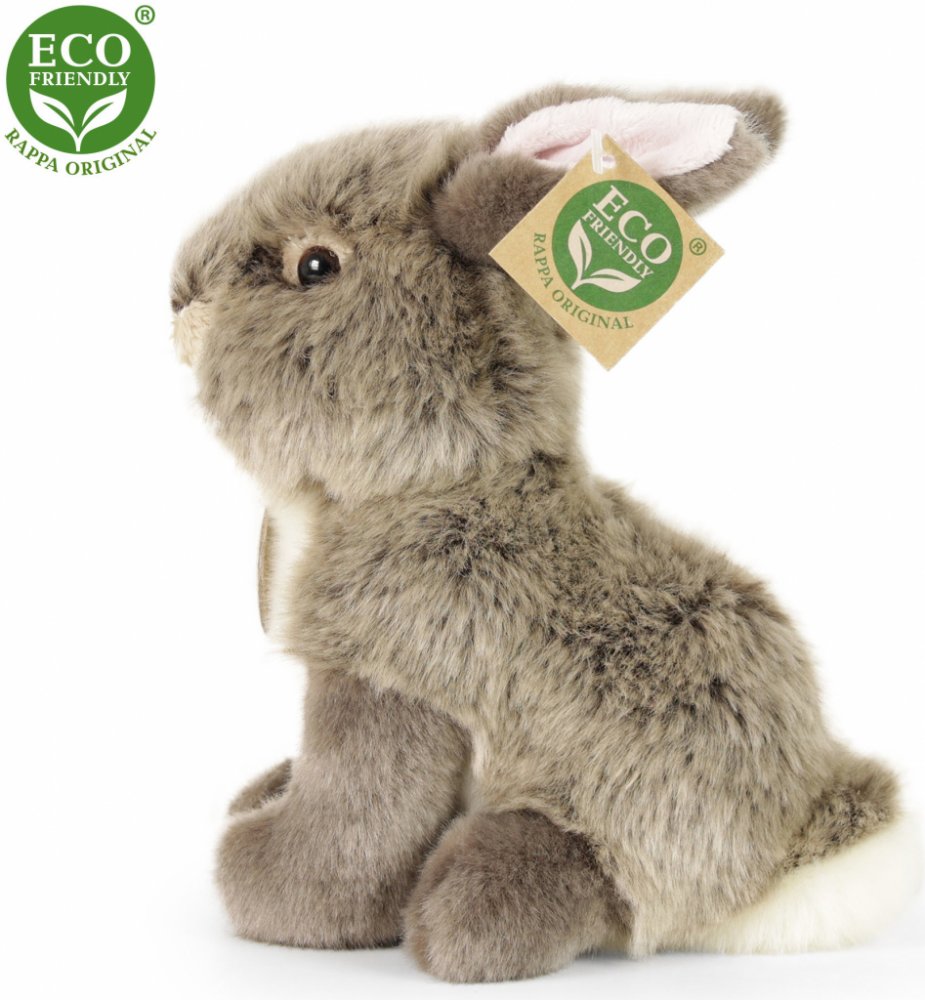 Sedící plyšový zajíc o velikosti 20 cm. Zajíc je vyroben z vysoce kvalitní plyše a je tak součástí exkluzivní kolekce plyšových hraček RAPPA. Co to vlastně ECO-FRIENDLY znamená? Výplň plyšové hračky je vyrobena z recyklovaných PET lahví. Tento materiál je zcela bezpečný, na omak nerozeznatelný od standardní výplně a plně atestovaný pro bezpečnost i těch nejmenších. Rozhodli jsme se jít zelenou ces...