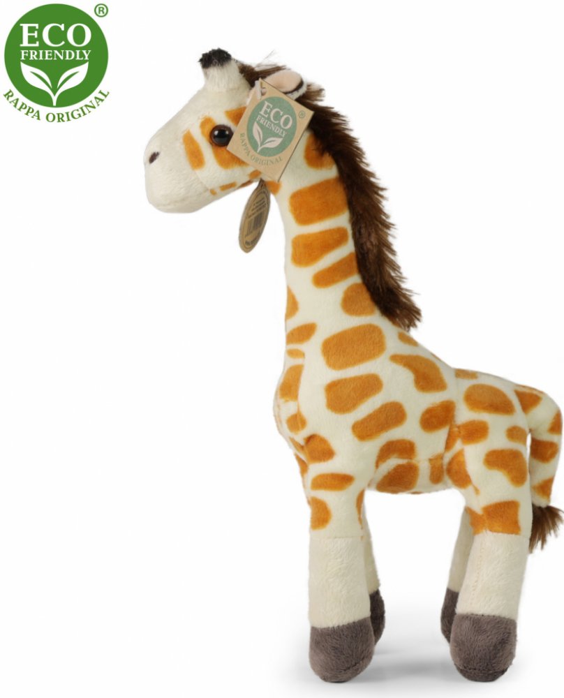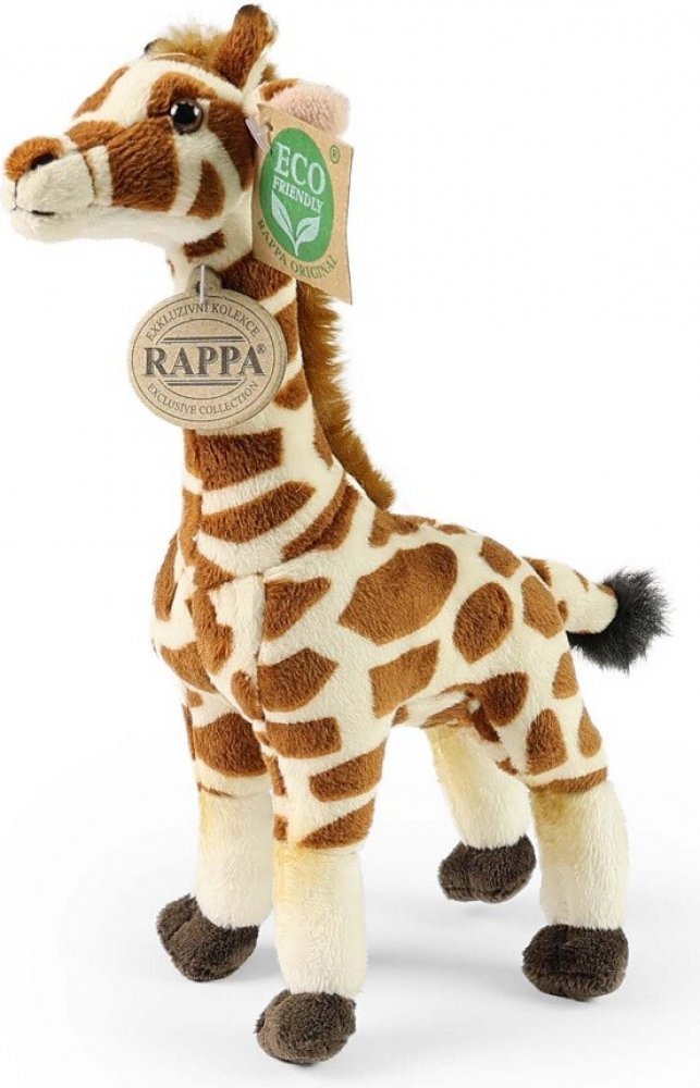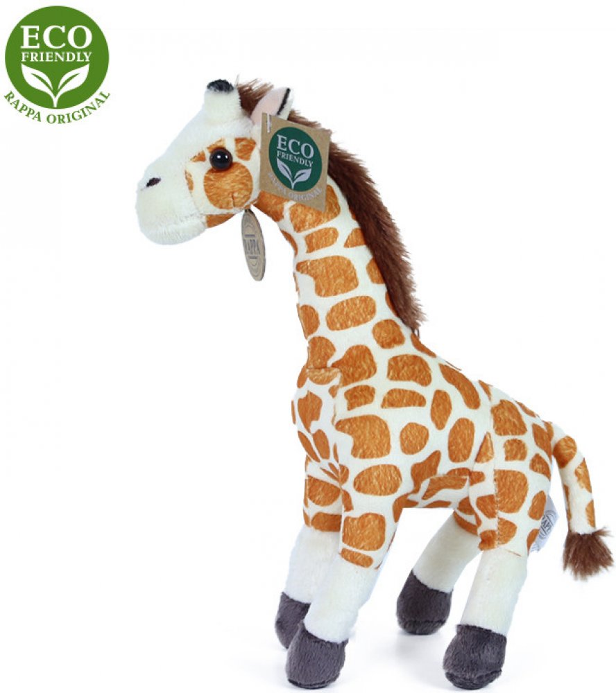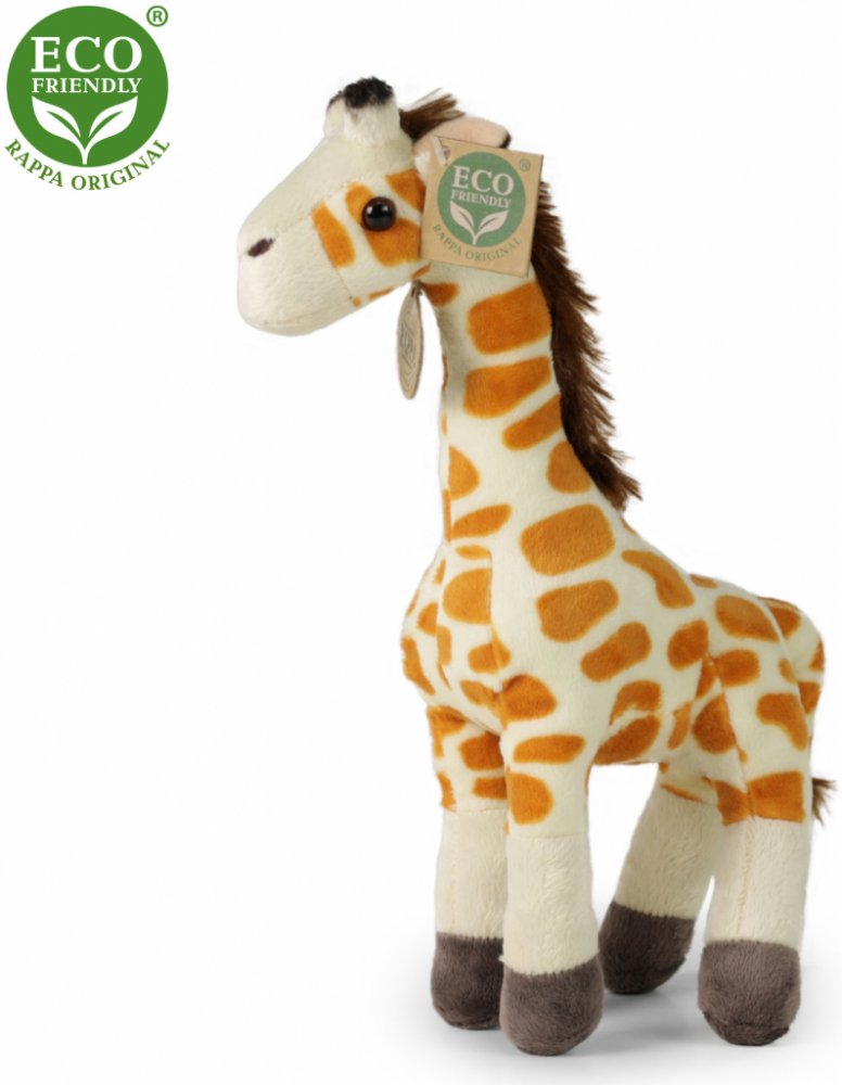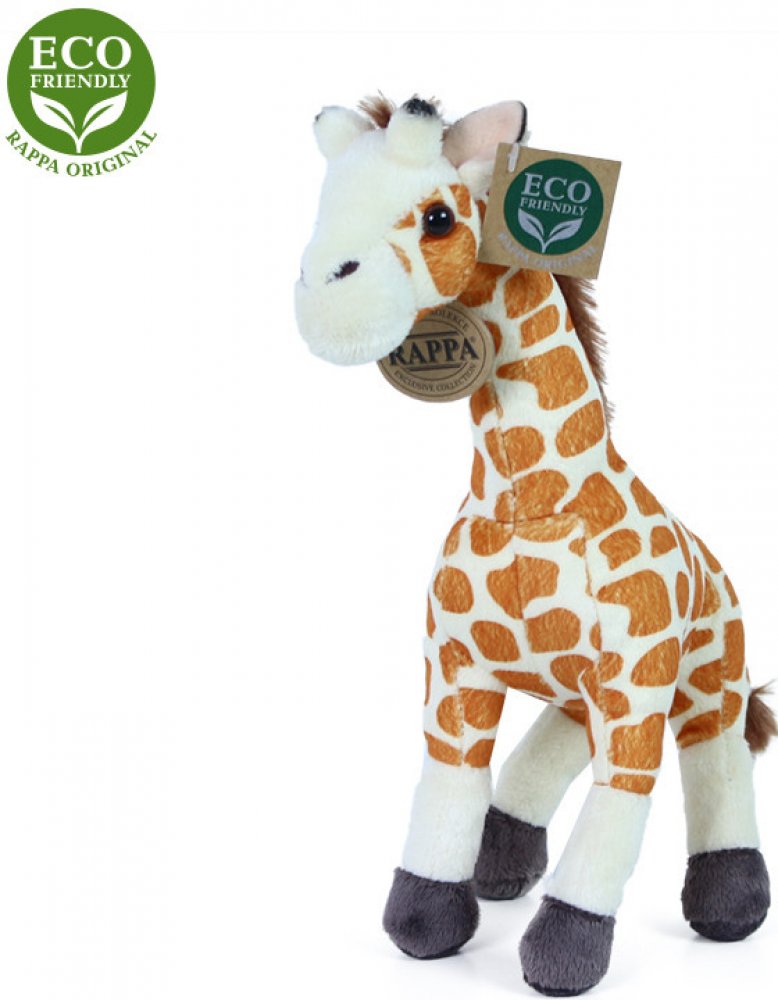 Krásná plyšová žirafa o velikosti 27 cm. Žirafa je vyrobena z vysoce kvalitní plyše a je tak součástí exkluzivní kolekce plyšových hraček RAPPA. Co to vlastně ECO-FRIENDLY znamená? Výplň plyšové hračky je vyrobena z recyklovaných PET lahví. Tento materiál je zcela bezpečný, na omak nerozeznatelný od standartní výplně a plně atestovaný pro bezpečnost i těch nejmenších. Rozhodli jsme se jít zelenou ...