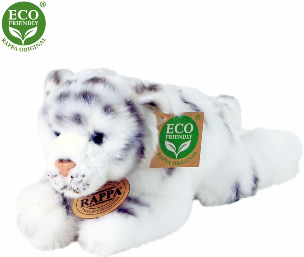 Plyšový ležící bílý tygřík, pro všechny milovníky plyšových zvířátek.